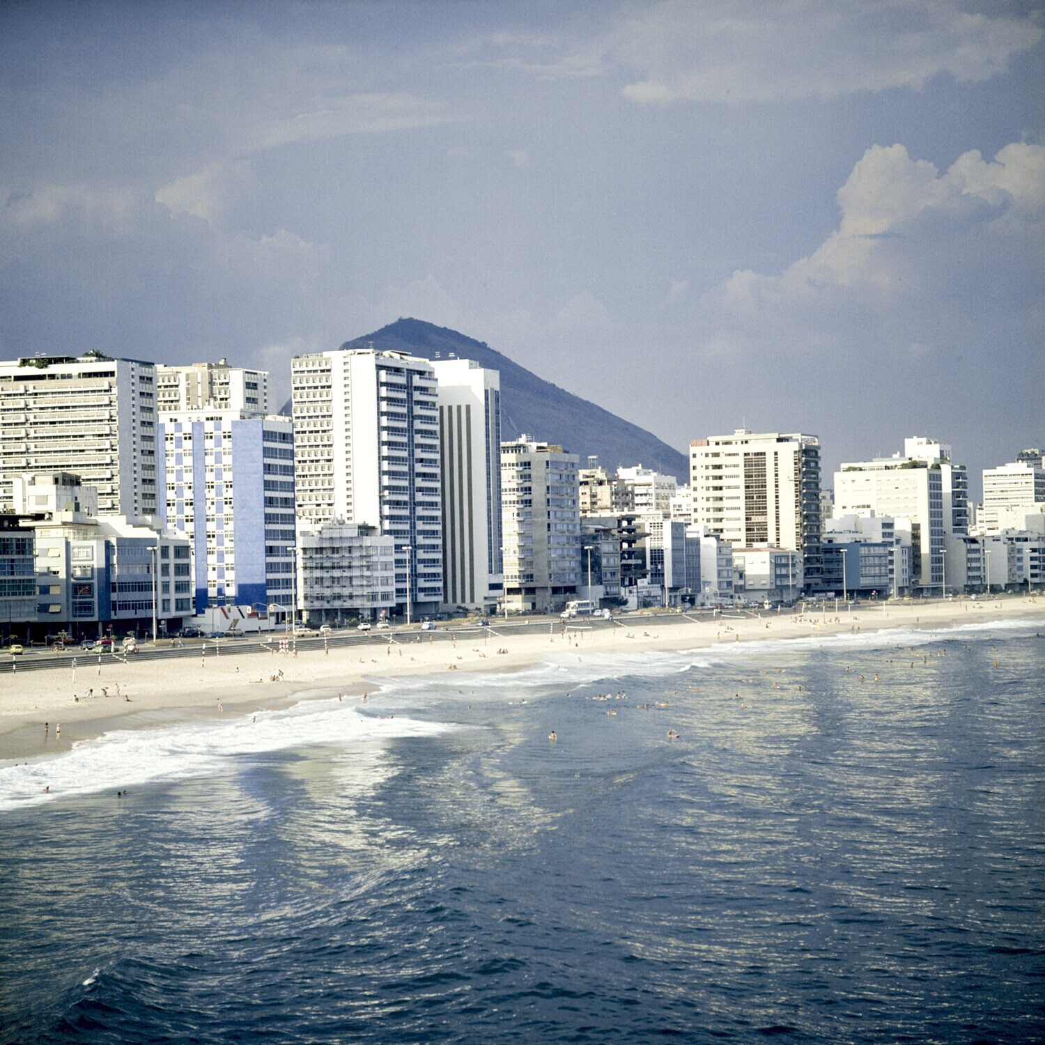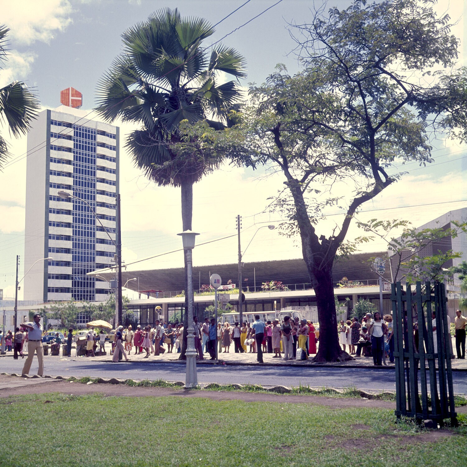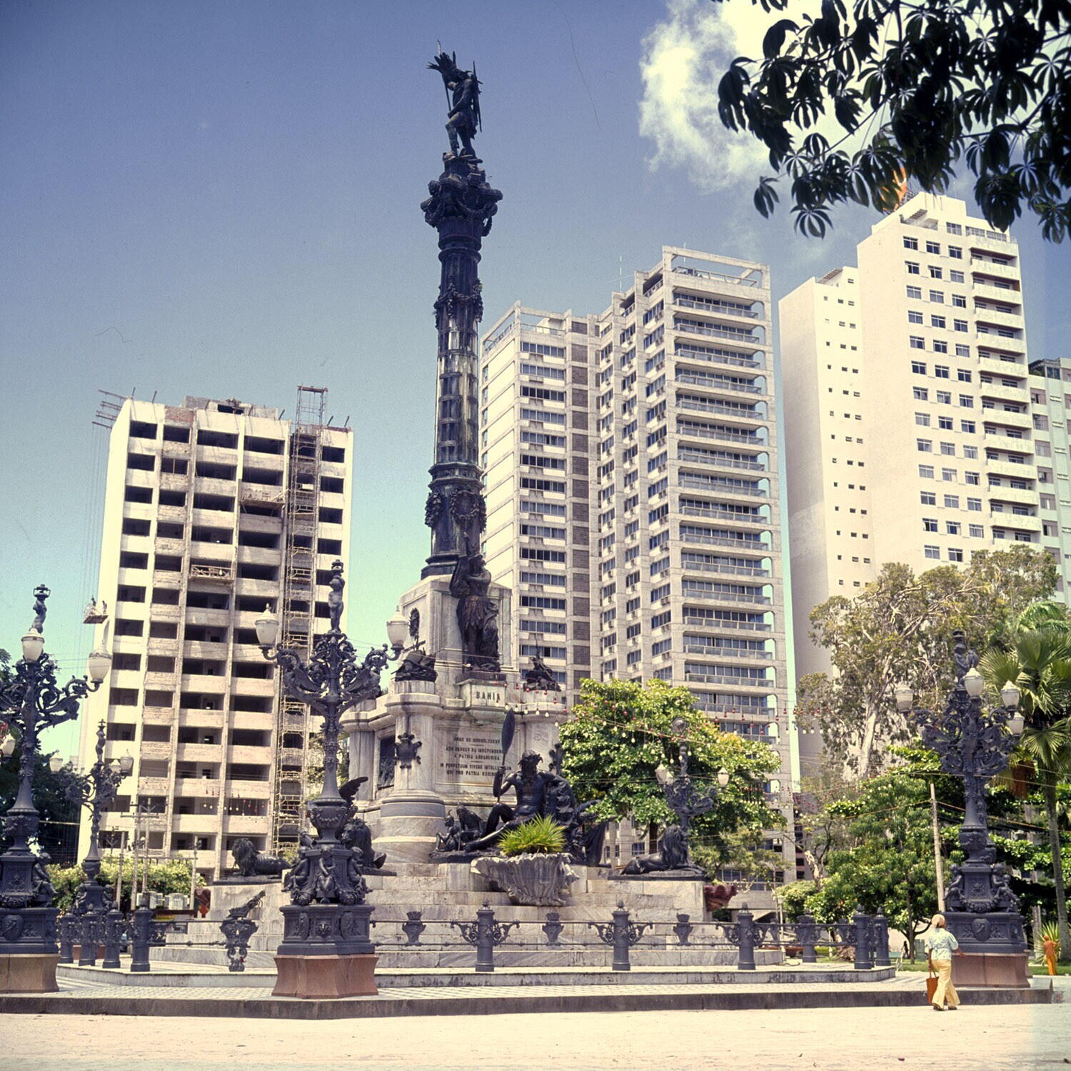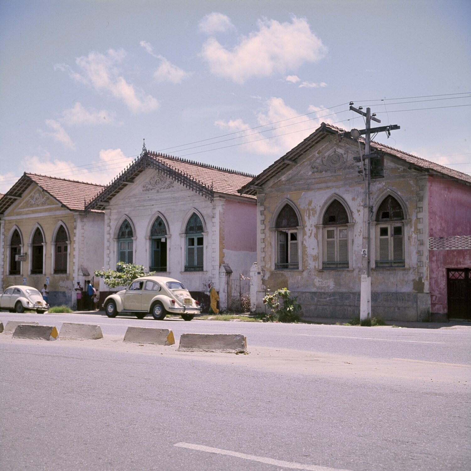 De Boa Viagem met oude huizen, winkels en de nieuwbo...