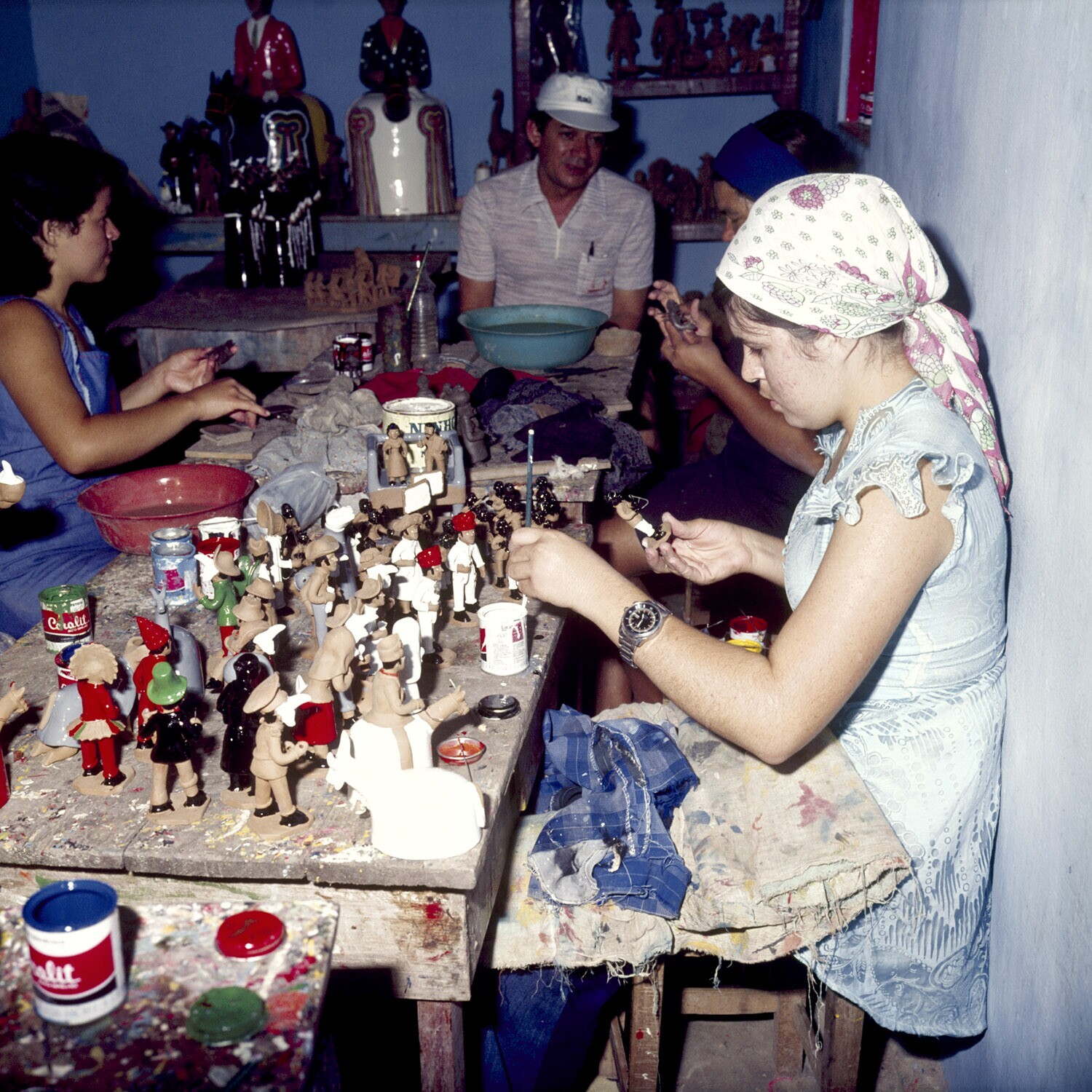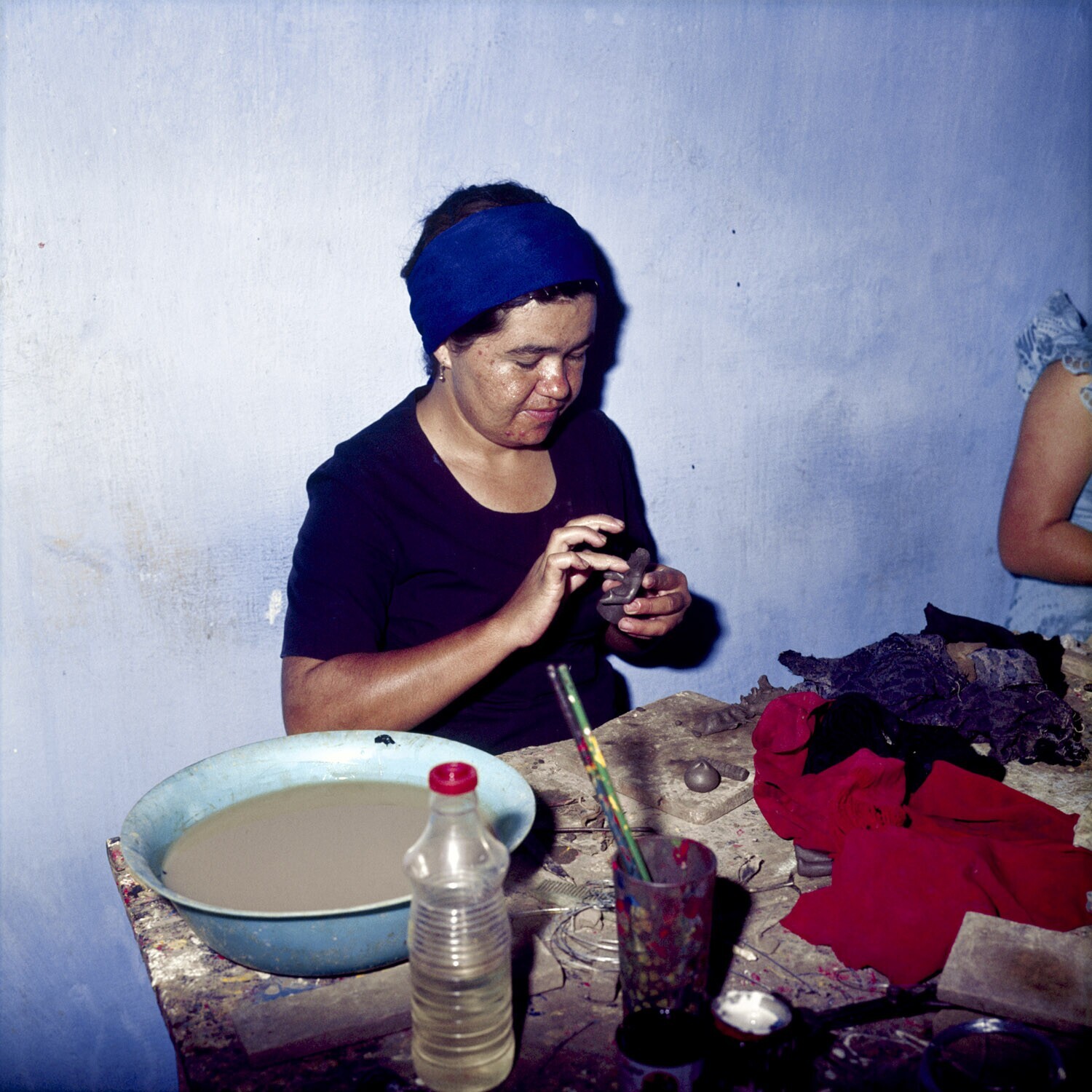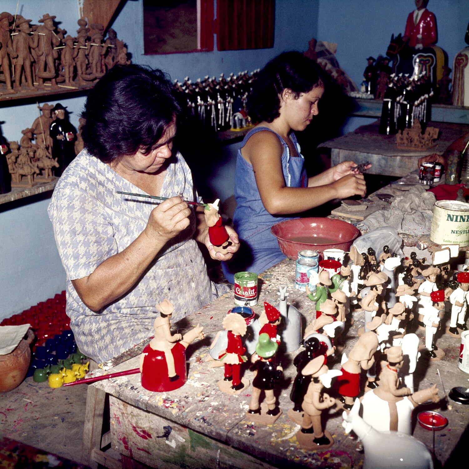 Het beschilderen van de gebakken figuren, pottenbakk...