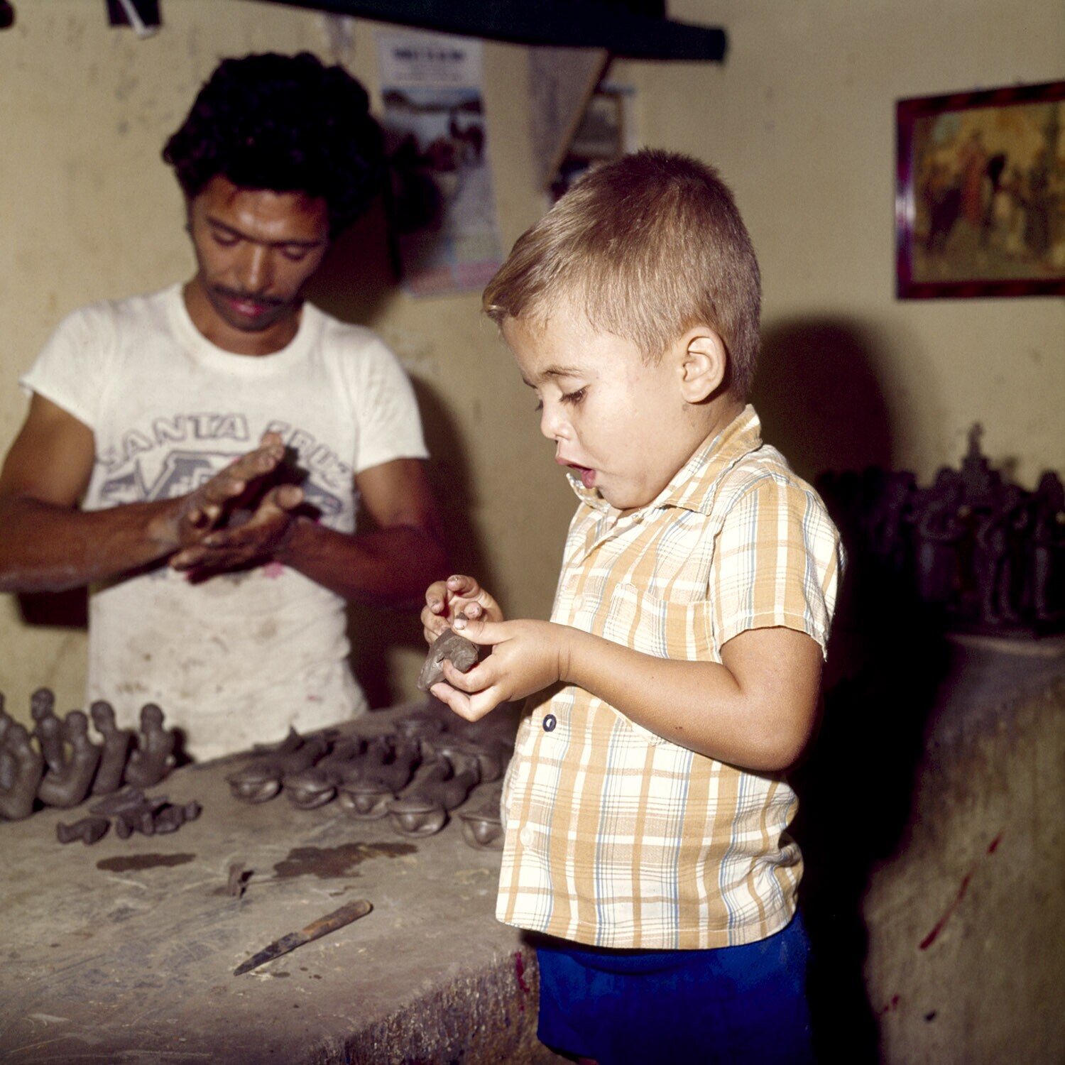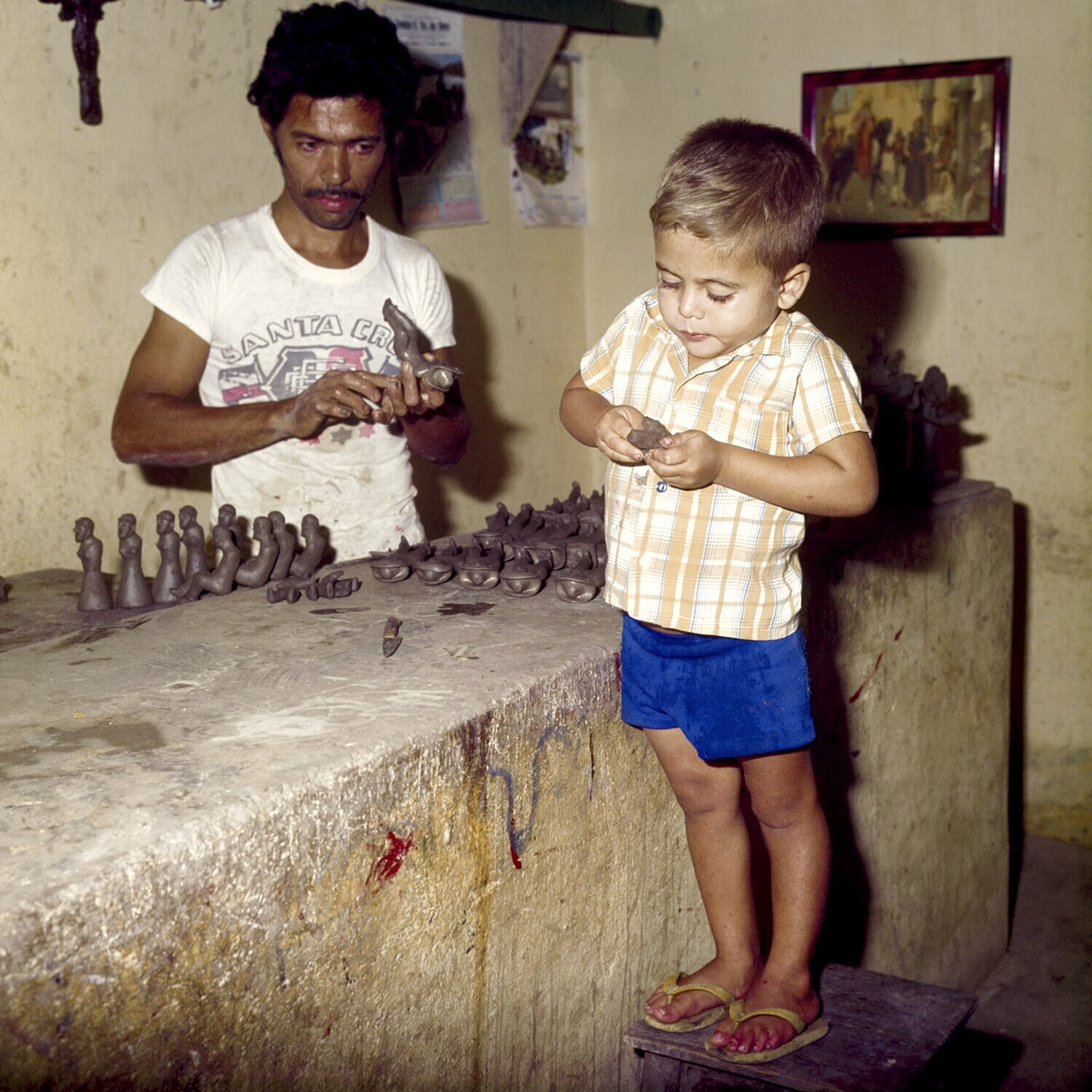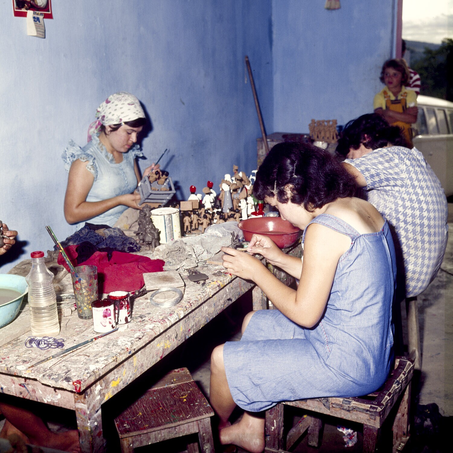 Het beschilderen van de gebakken figuren, pottenbakk...