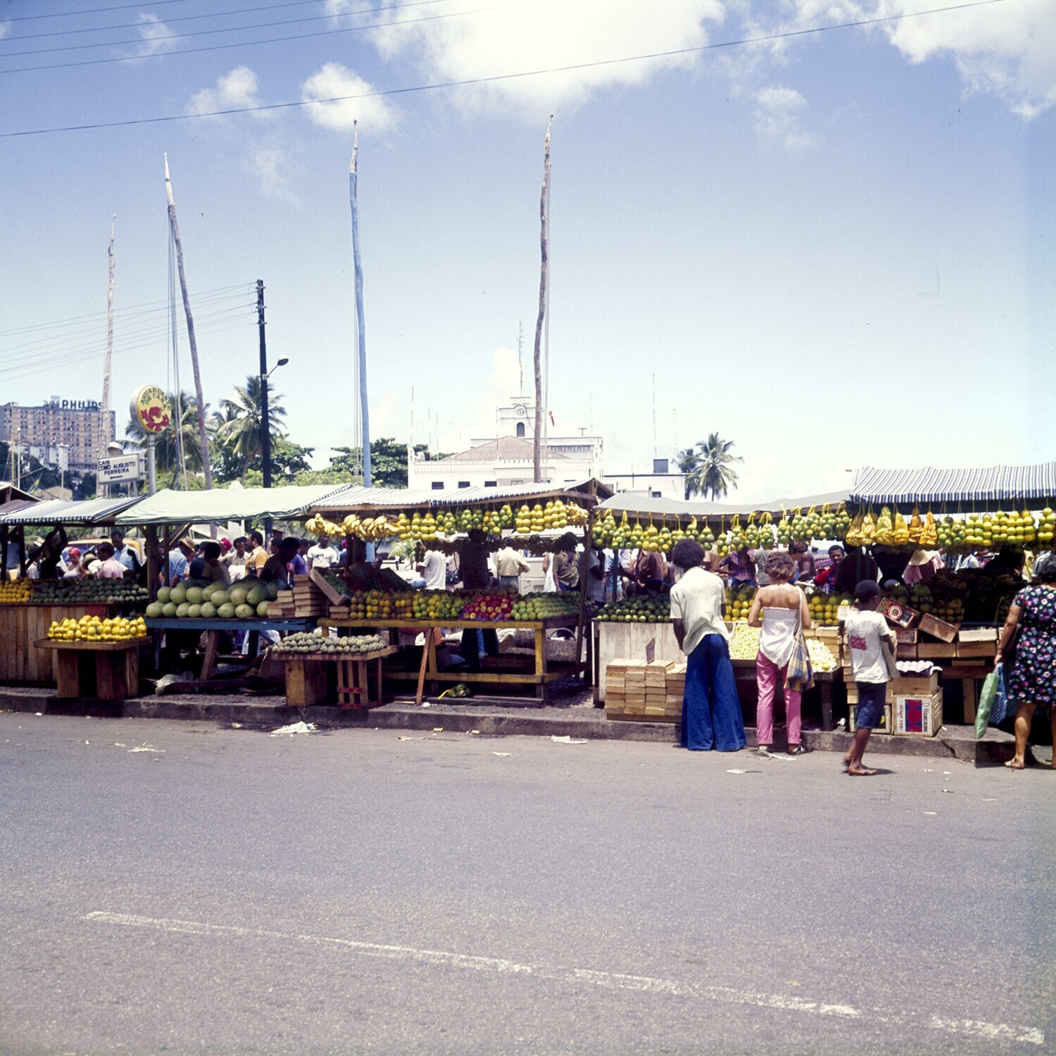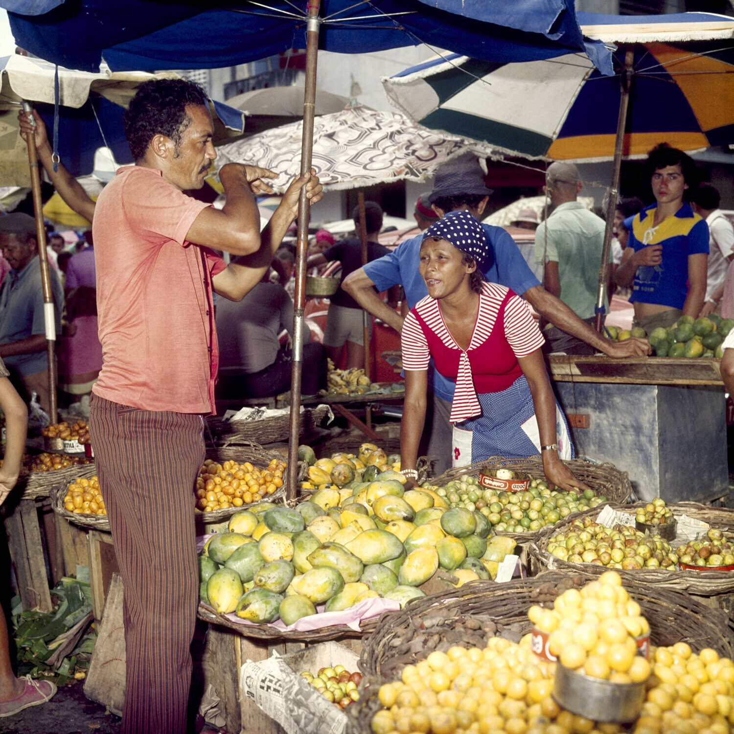 Fruitstalletjes langs de kant van de weg, Salvador.