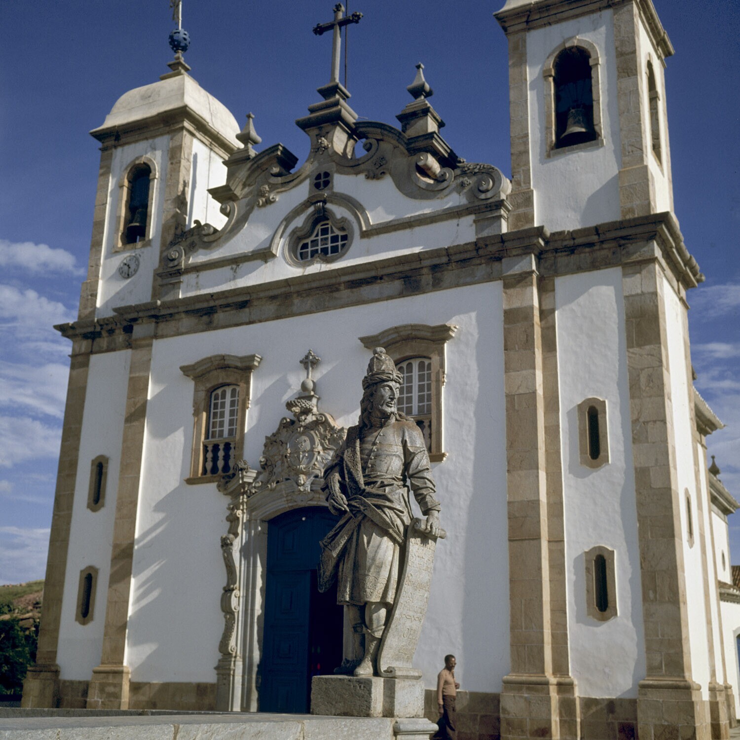 De wereldberoemde kerk te Ouro Preto met de beelden ...