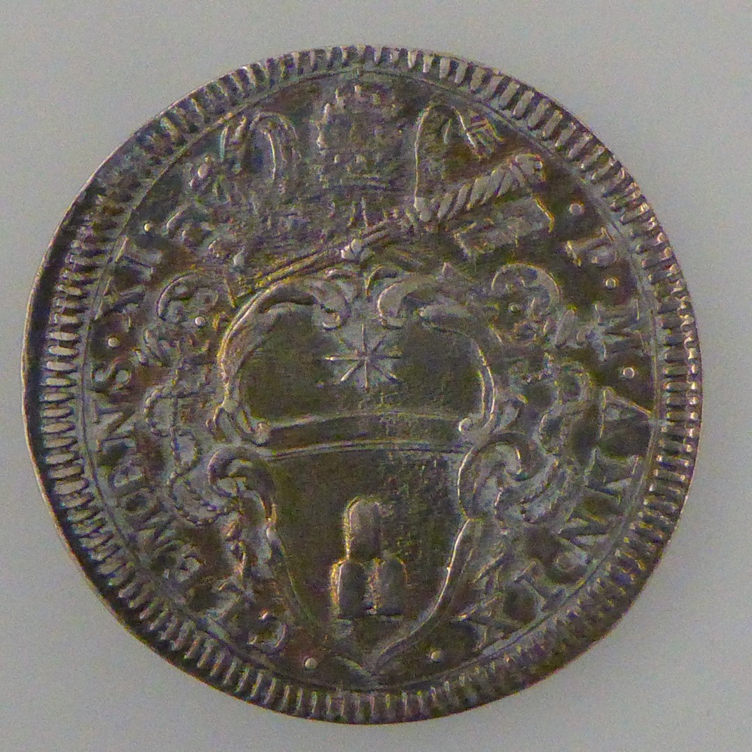 Pauspenning paus Clemens XI, met pauselijk wapen, ra...