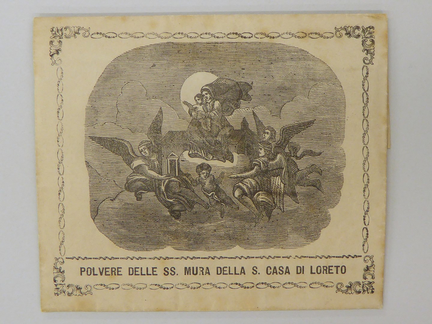 Papieren wikkel waarop engelen en Maria met kind, er...