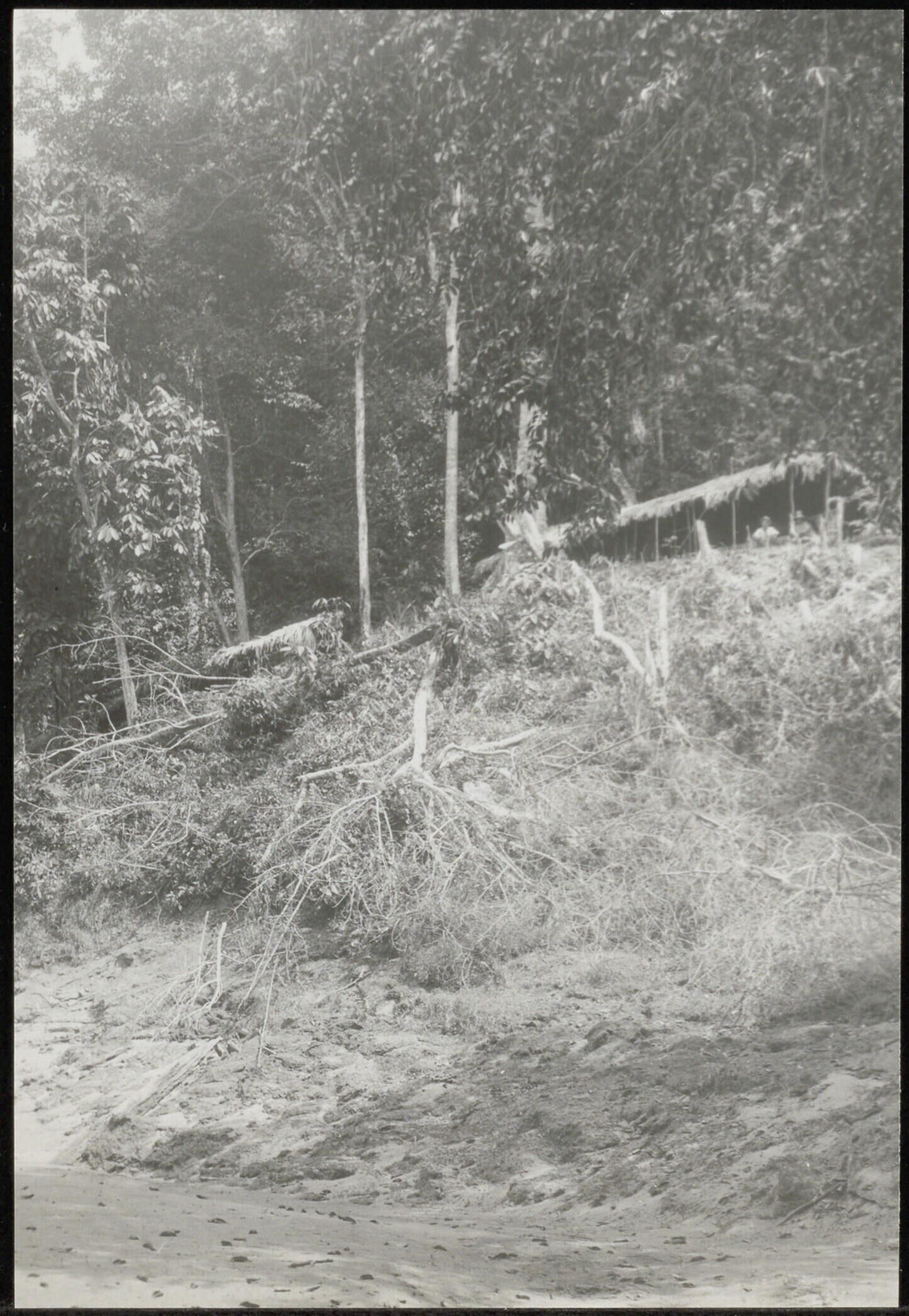 Opengekapte plek, een ladang, in bos aan de oever va...