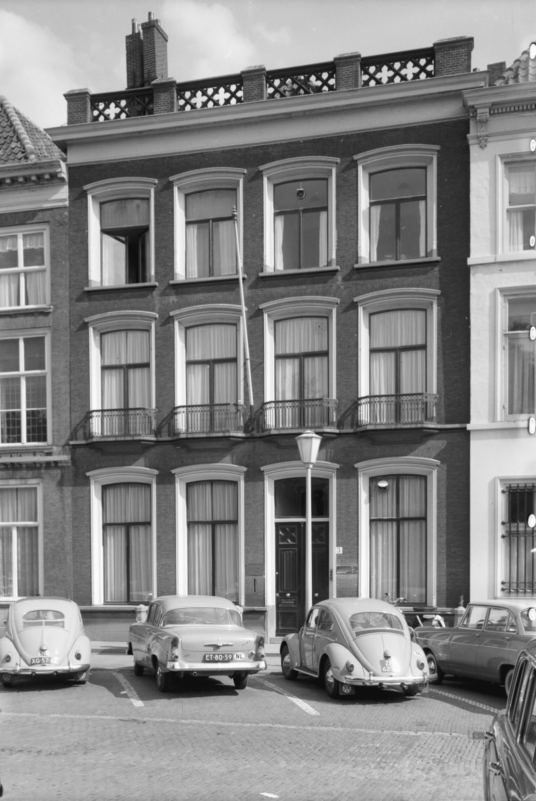 Voorgevel van drielaags pand met balkons voor de ven...