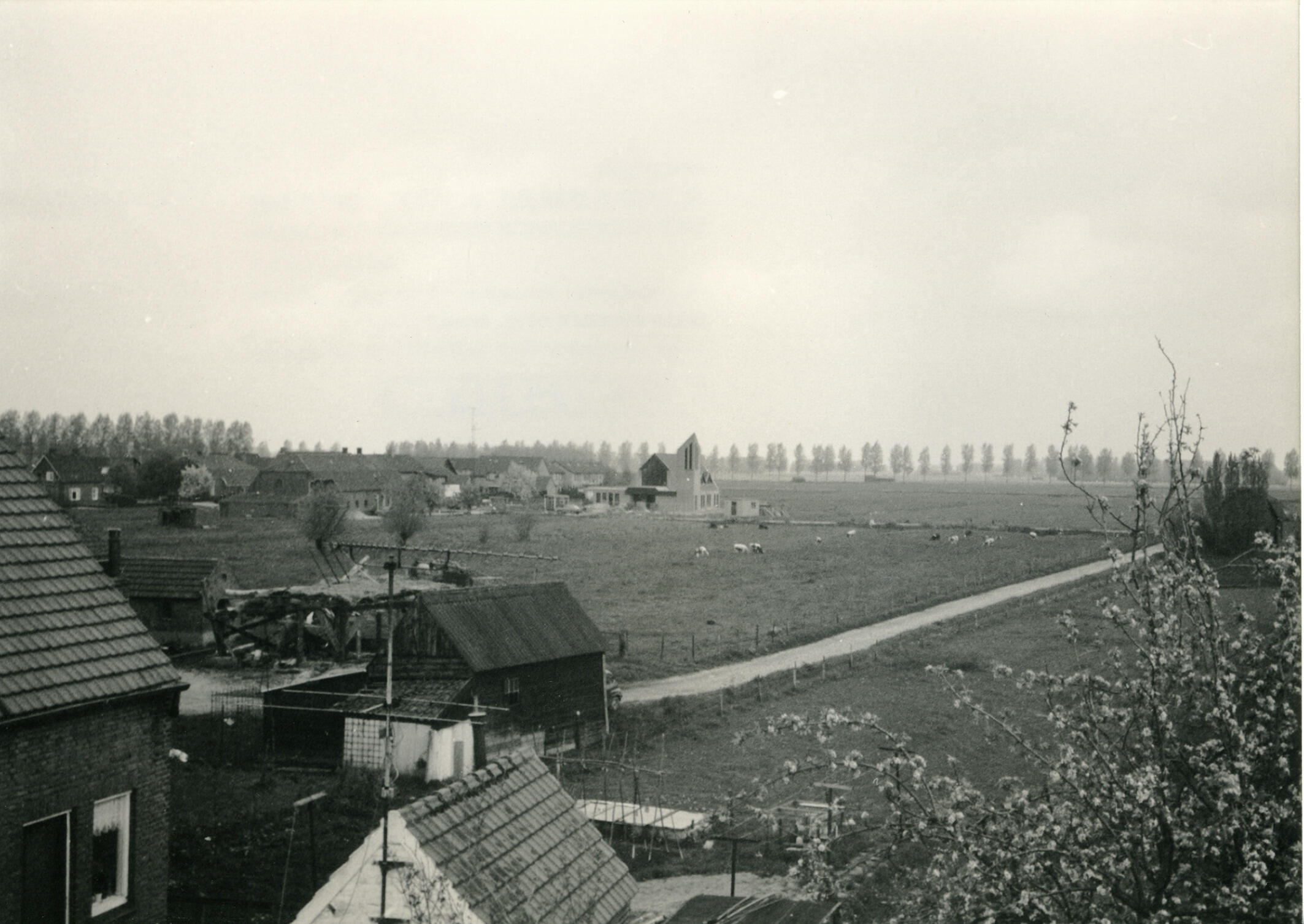 Kerk met pastorie, Hellouw, 1985 (zwart-wit foto)