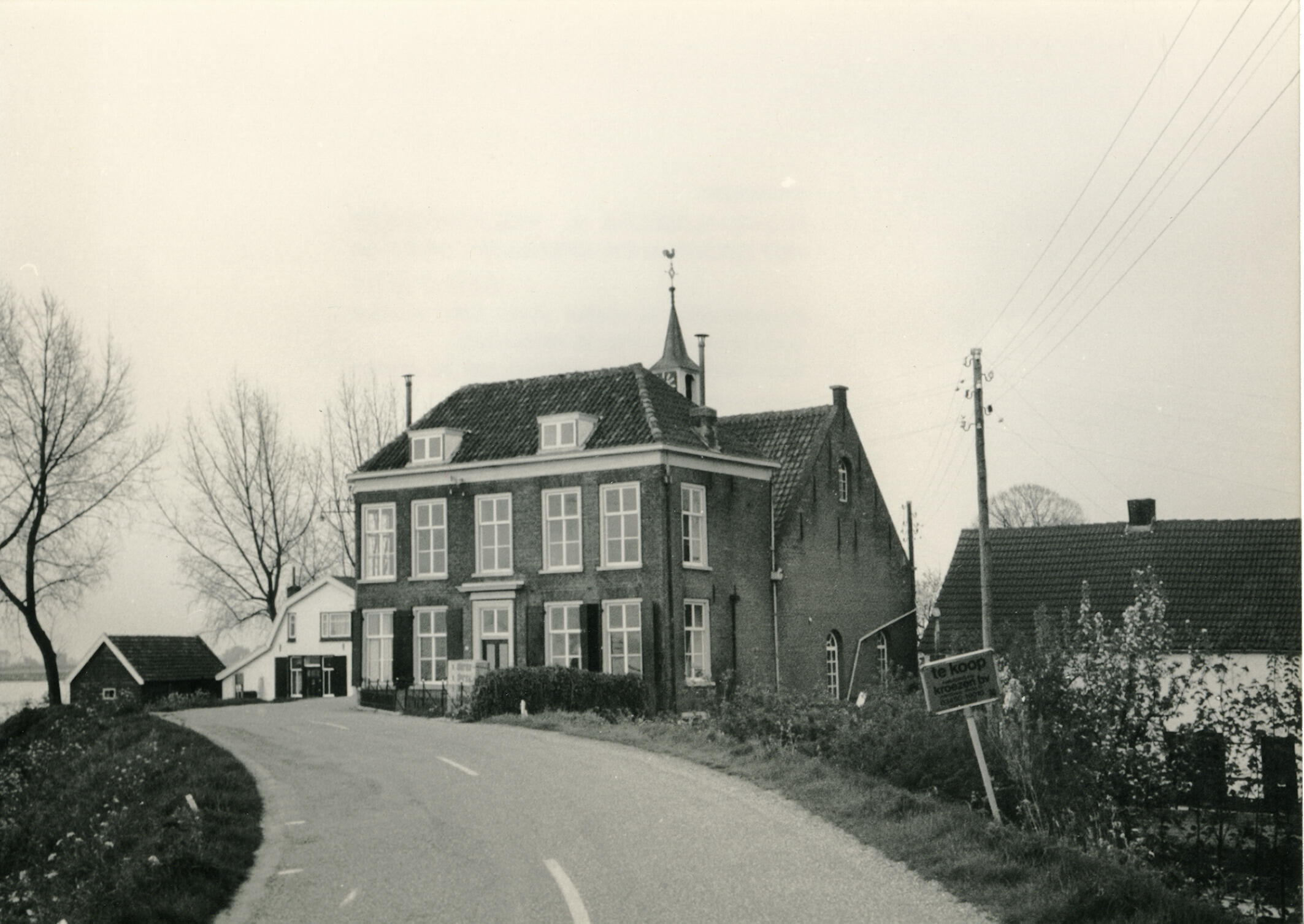 Dijk met elektriciteitspalen, Hellouw, 1985 (zwart-w...