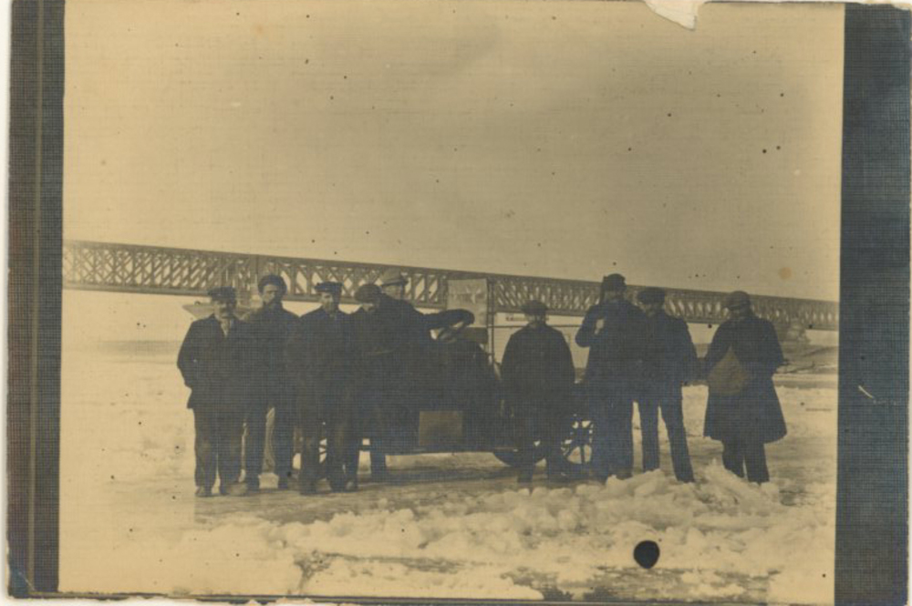 Bouw spoorbrug over de waal bij Zaltbommel rond 1863.