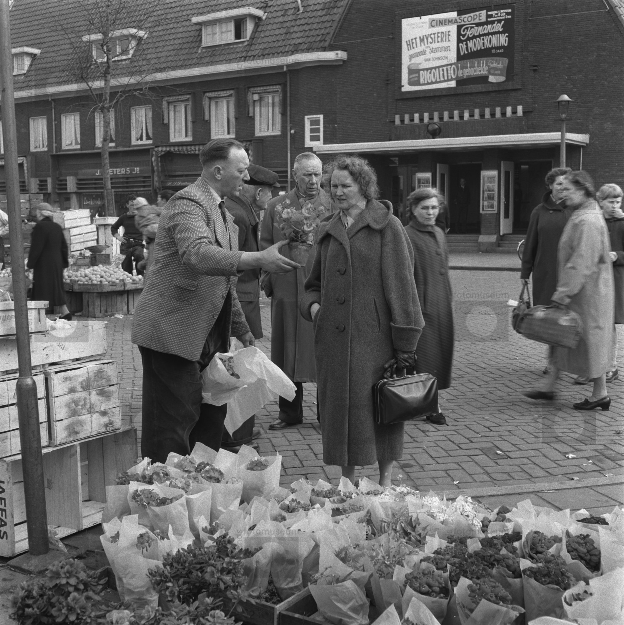 Amsterdam. Dagmarkt aan het Mosplein. Op achtergrond...