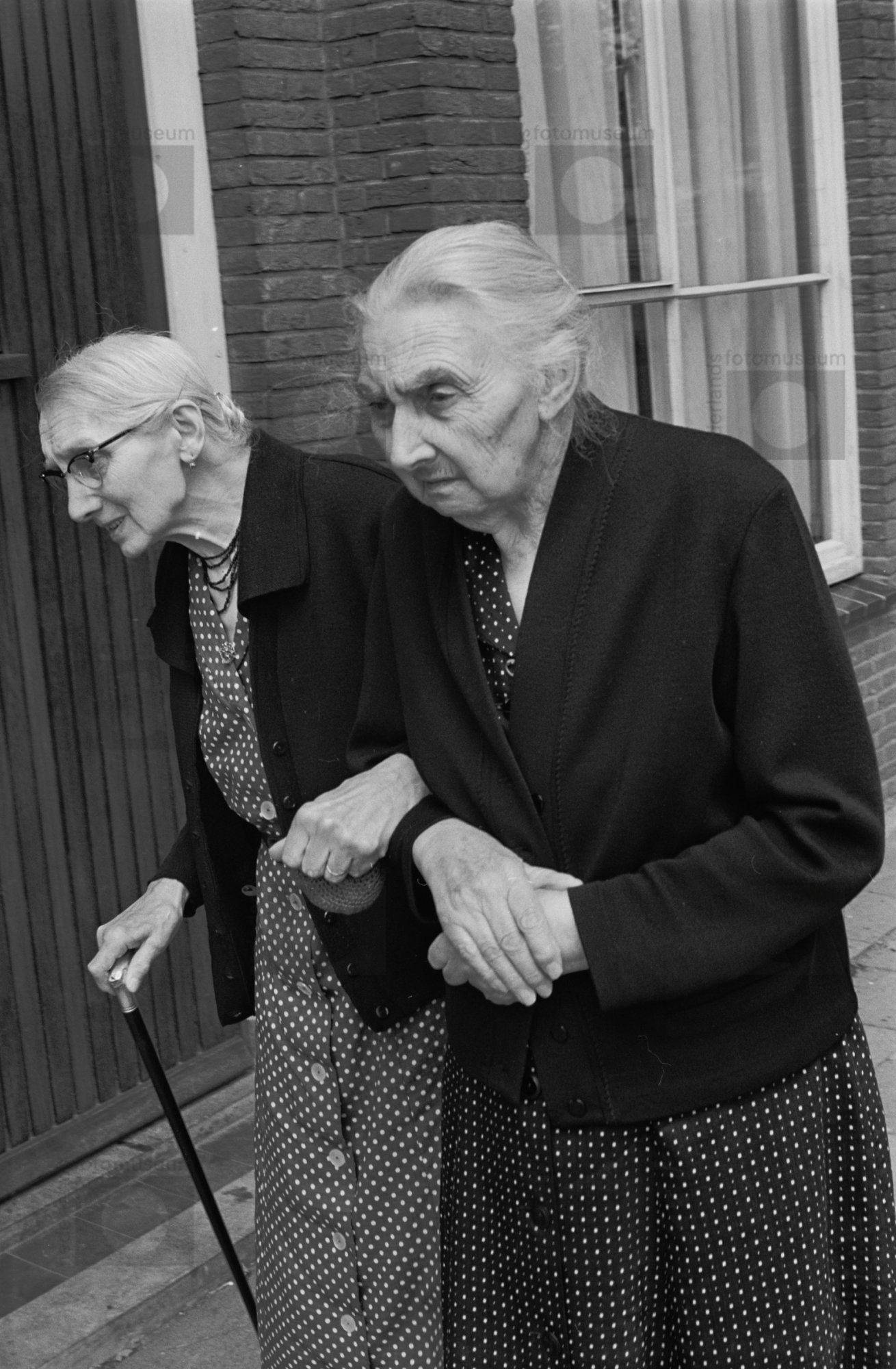 Zwolle, twee oude vrouwen lopen gearmd op straat
