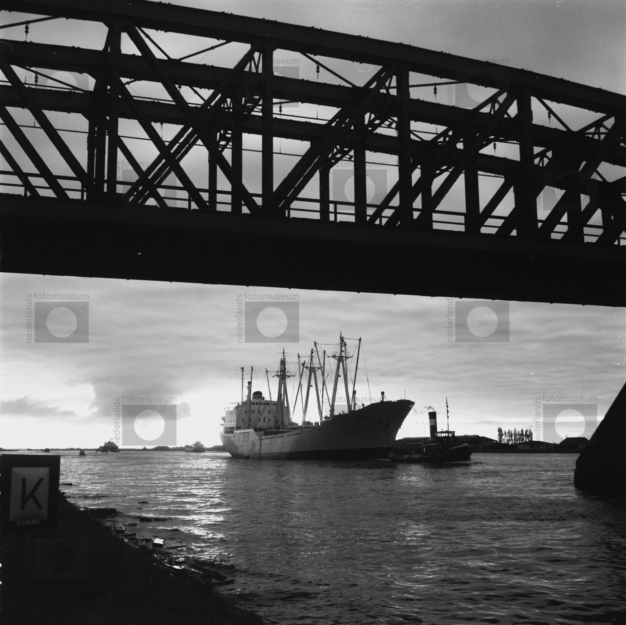 Noordzeekanaal. Schip vaart onder de Hembrug door op...