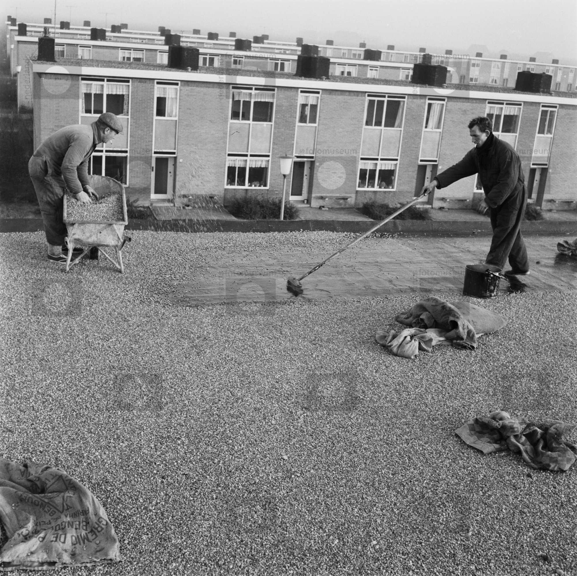 Noordoostpolder. Nagele nieuw dorp. Dakdekkers zijn ...