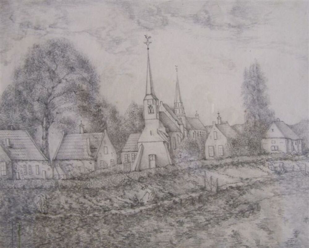 Tekening van 2 kerken in Heumen