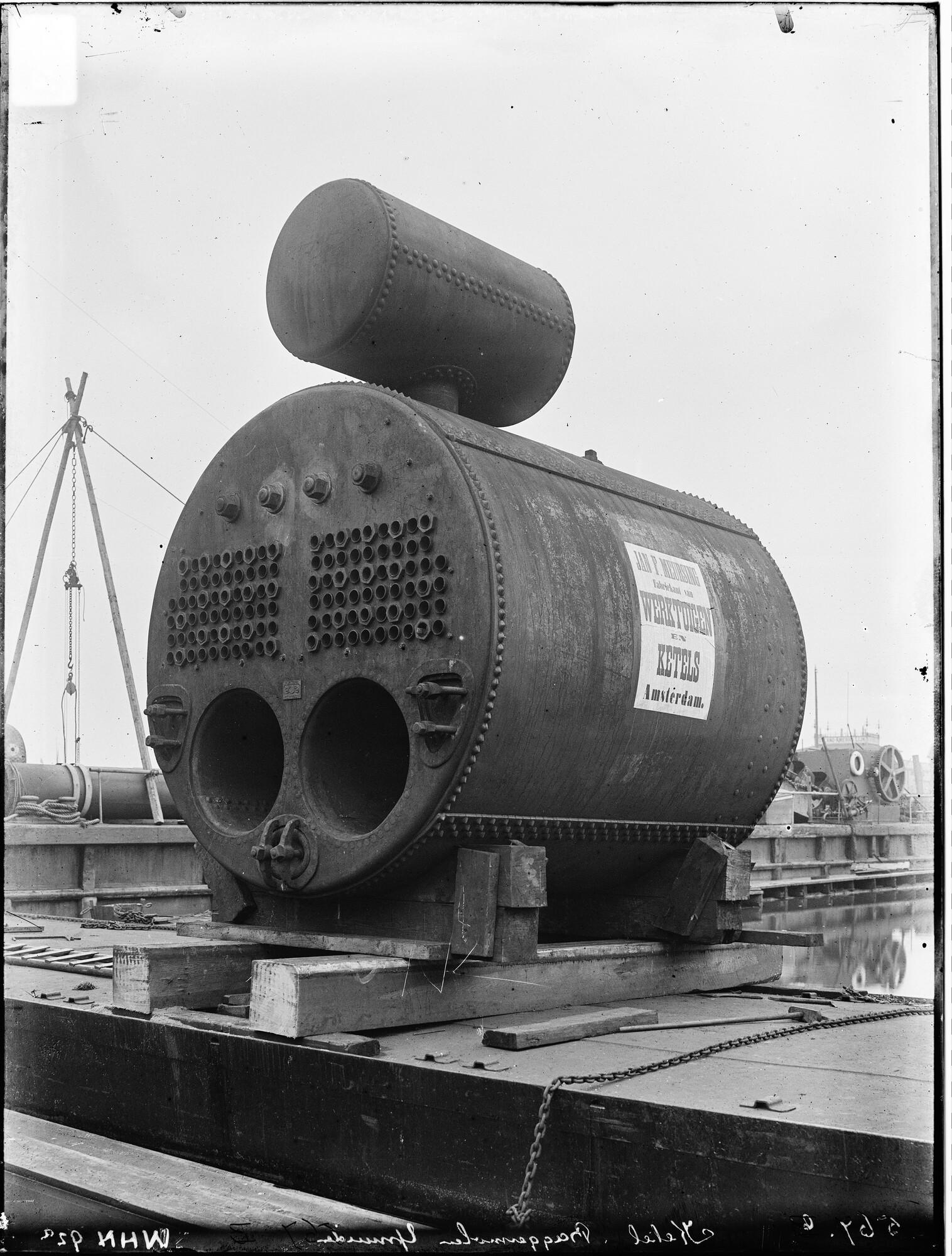 Glasnegatief van de nieuwe stoomketel voor het ss. S...