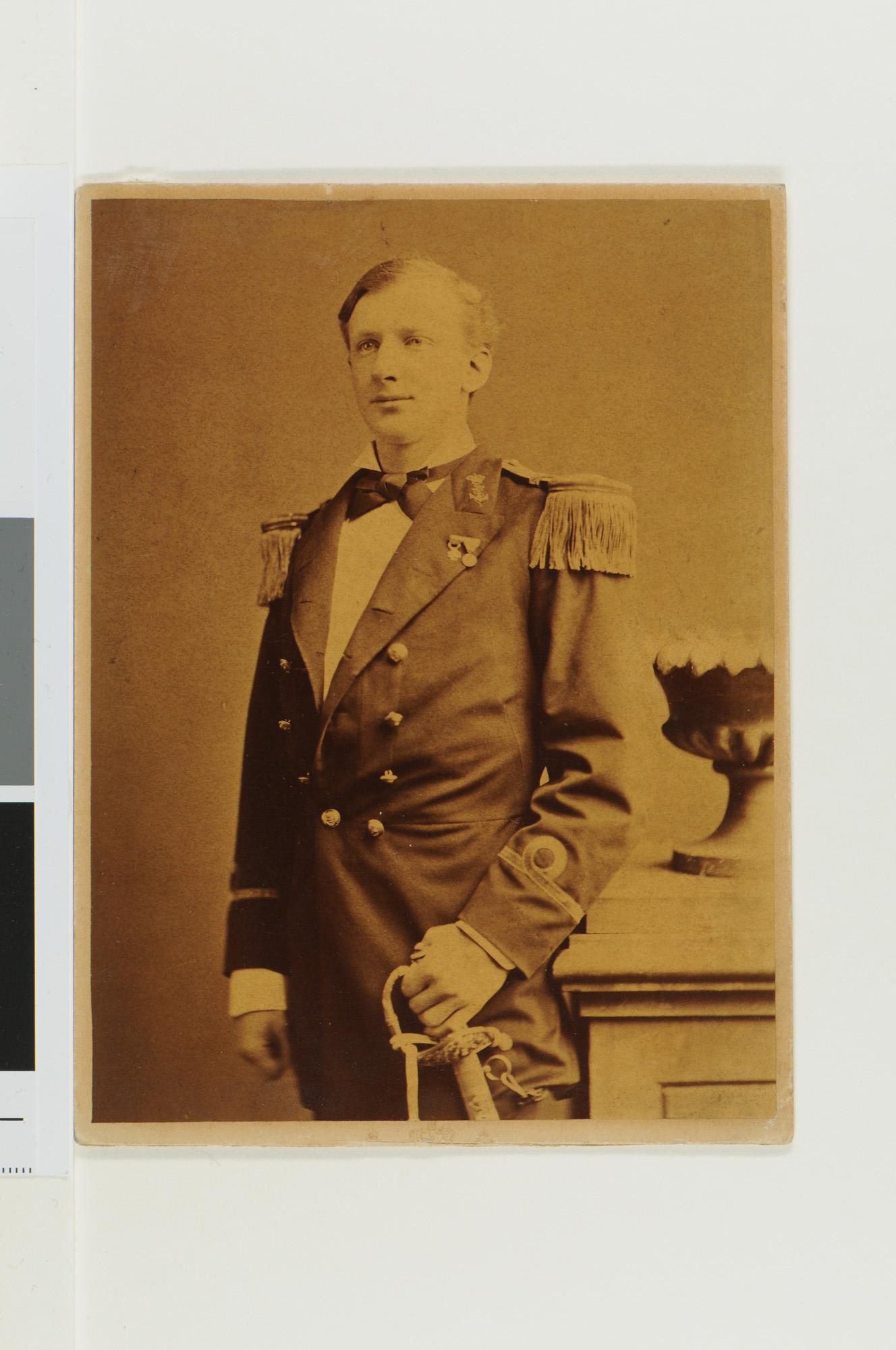 Zwart-wit foto, portret van een (zee)officier in een...