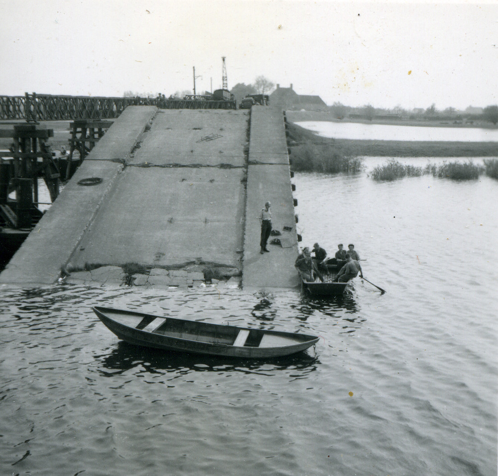 Zwart-wit foto van de Genietroep die de Baileybrug a...