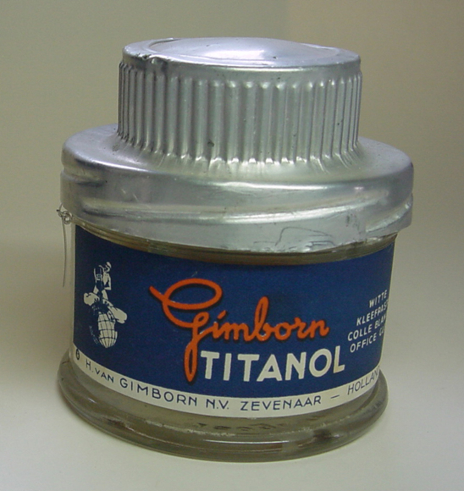 Fles van glas gevuld met Titanol plak door H. van Gi...