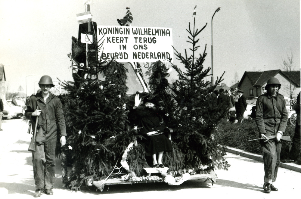 Zwart-wit foto van het bevrijdingsfeest in Pannerden...