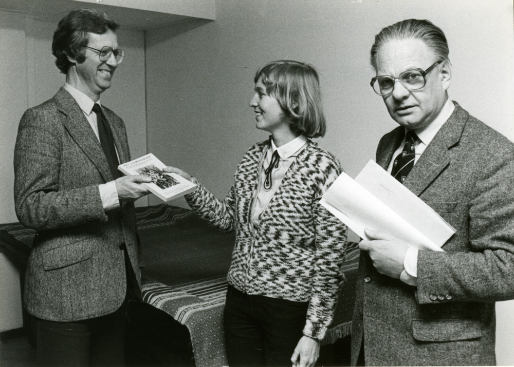 Zwart-wit foto van de uitreiking van het Liemersboek...
