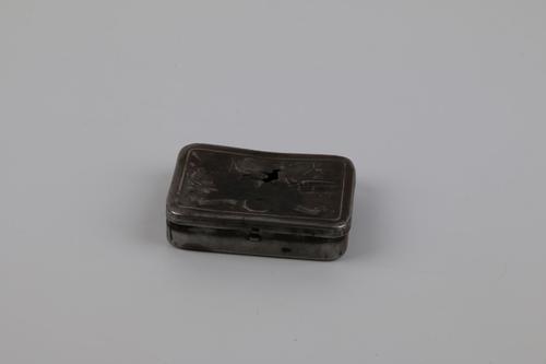 Snuifdoos, gesneden parelmoer met zilveren montuur