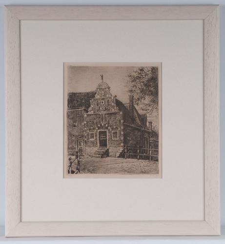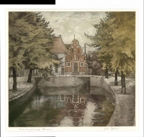 Ets in kleur van het Korendragershuisje in Franeker ...