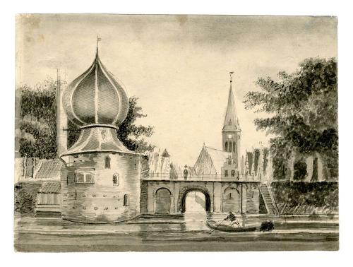 Tekening van de Dongjumer waterpoort te Franeker