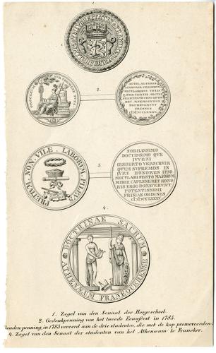 Prent met zegels van de Franeker Universiteit