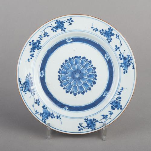 Bord van Chinees porselein met een decoratie van blo...