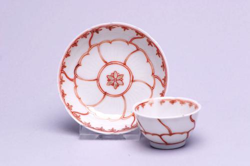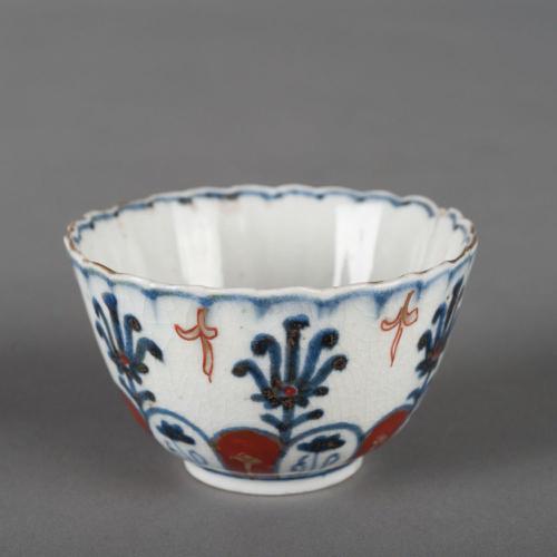 Chinees kopje met bloemrozet en verspringende vlakken