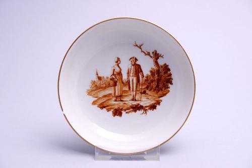Bord van Chinees porselein met een schildering van b...