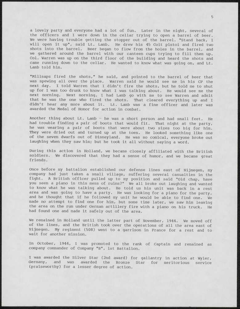 Persoonlijk verhaal van Woodrow W. Millsaps, B-Compa...