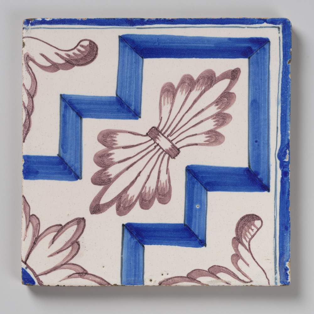 tegel van aardewerk met tinglazuur, voorstellende: o...