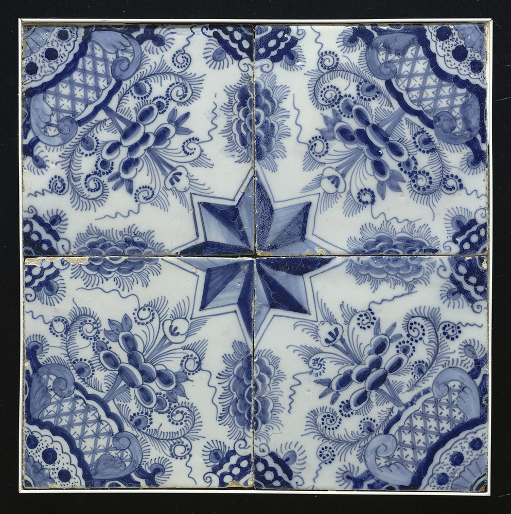 twee aan elkaar gebakken tegels van keramiek, ca. 17...