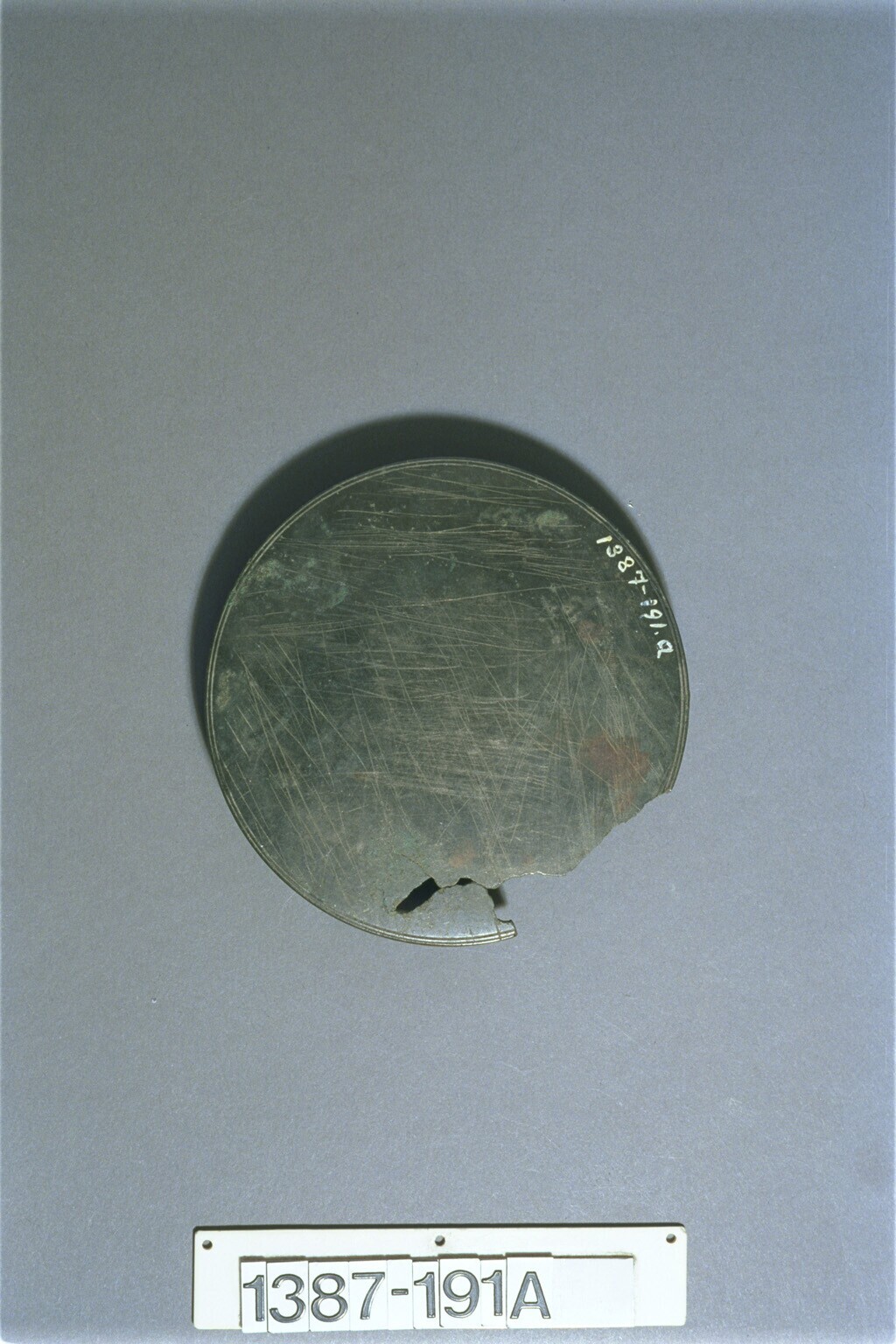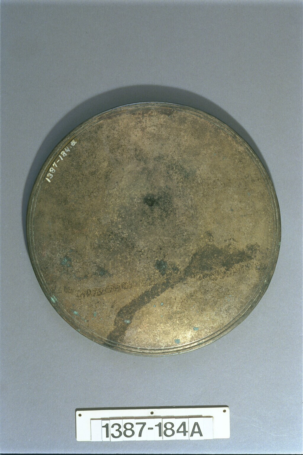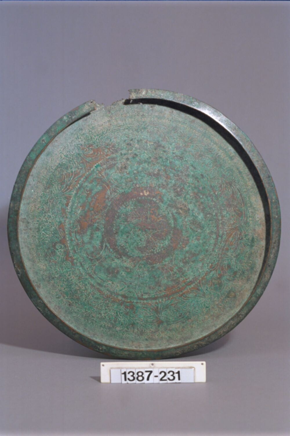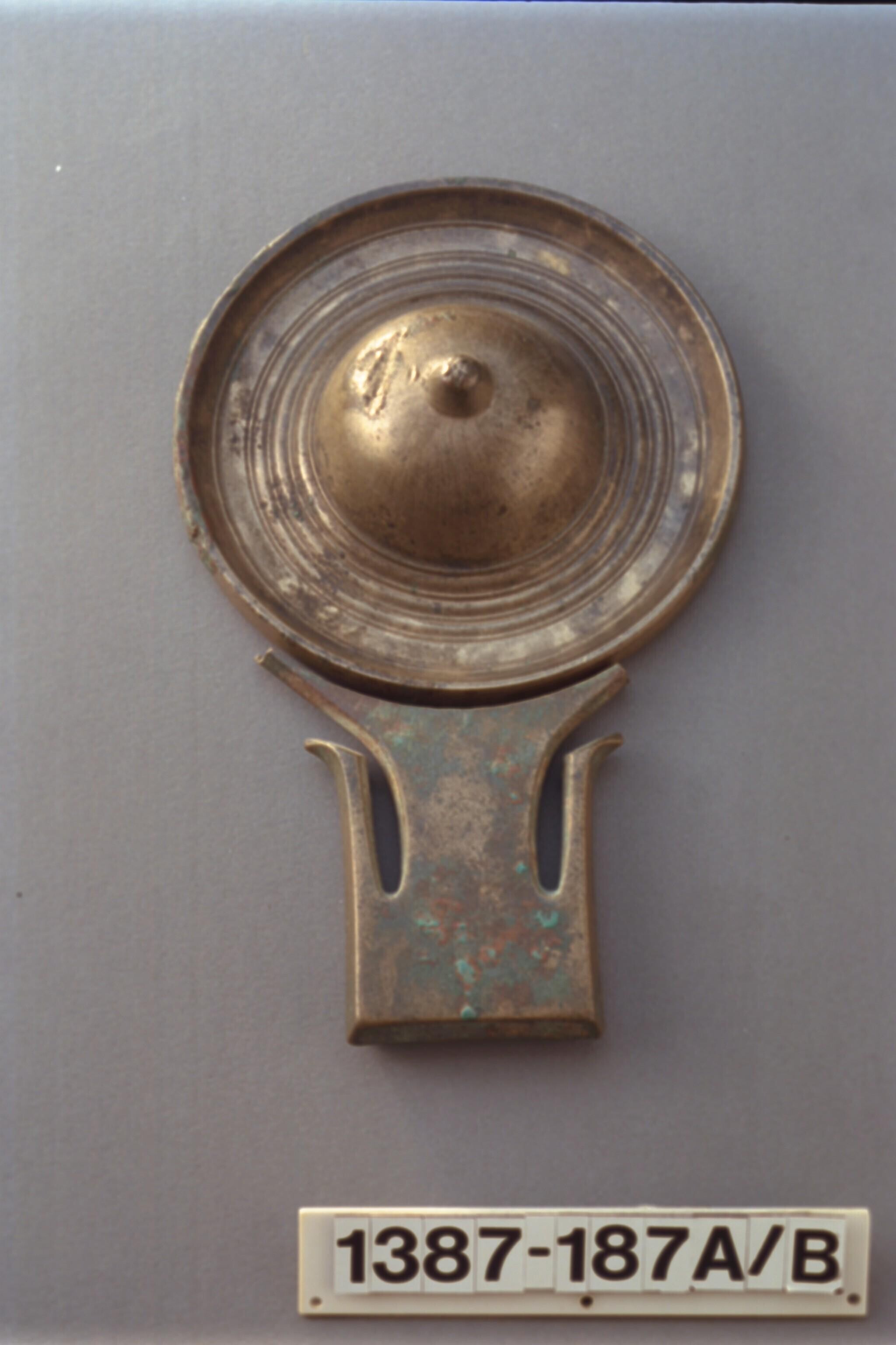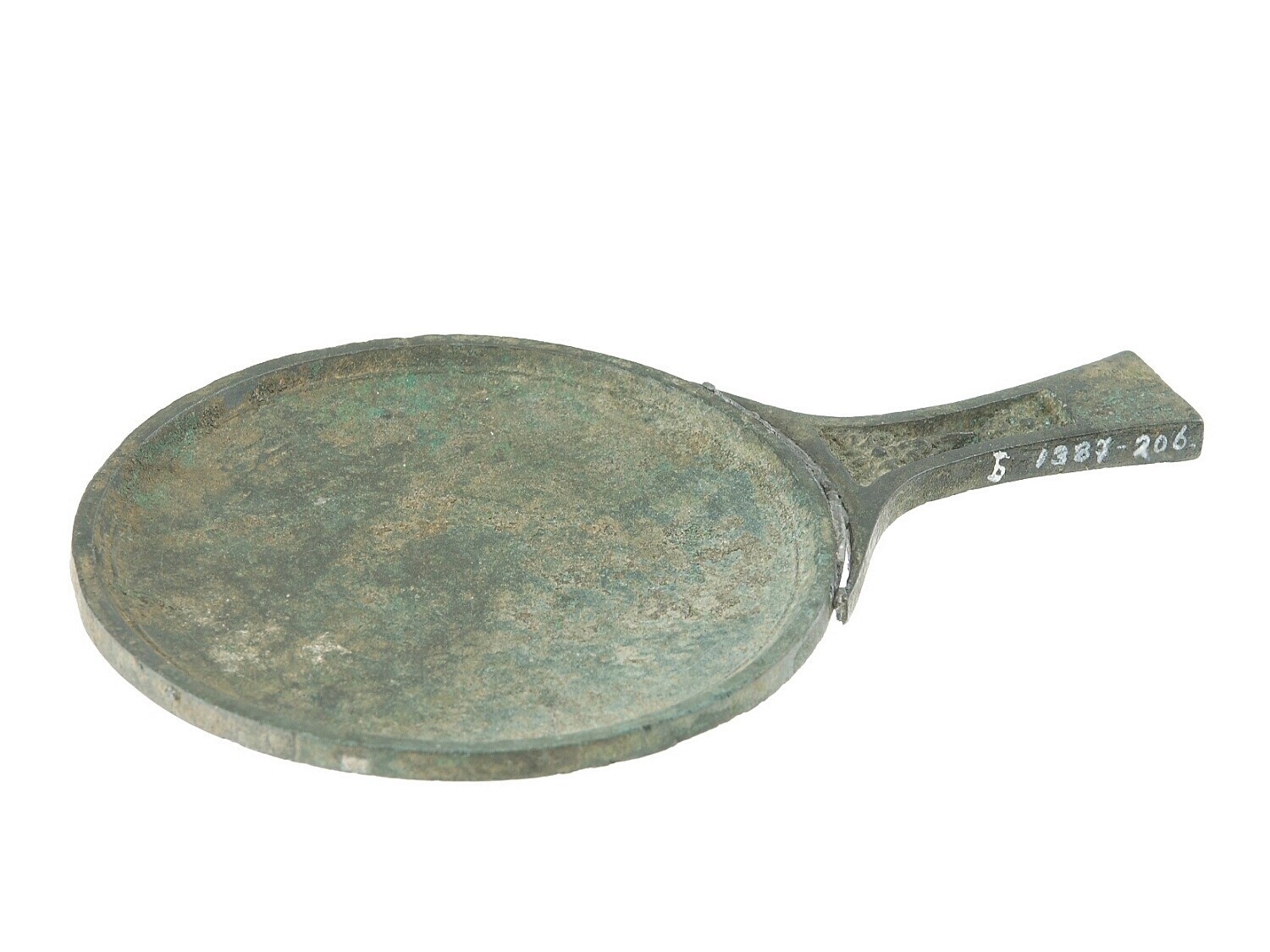 Bronzen handspiegel met een bijbehorend afgebroken f...