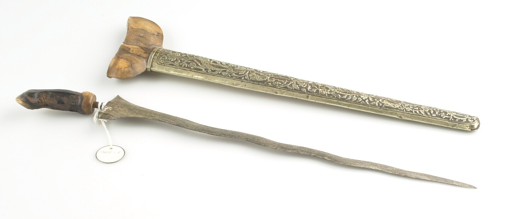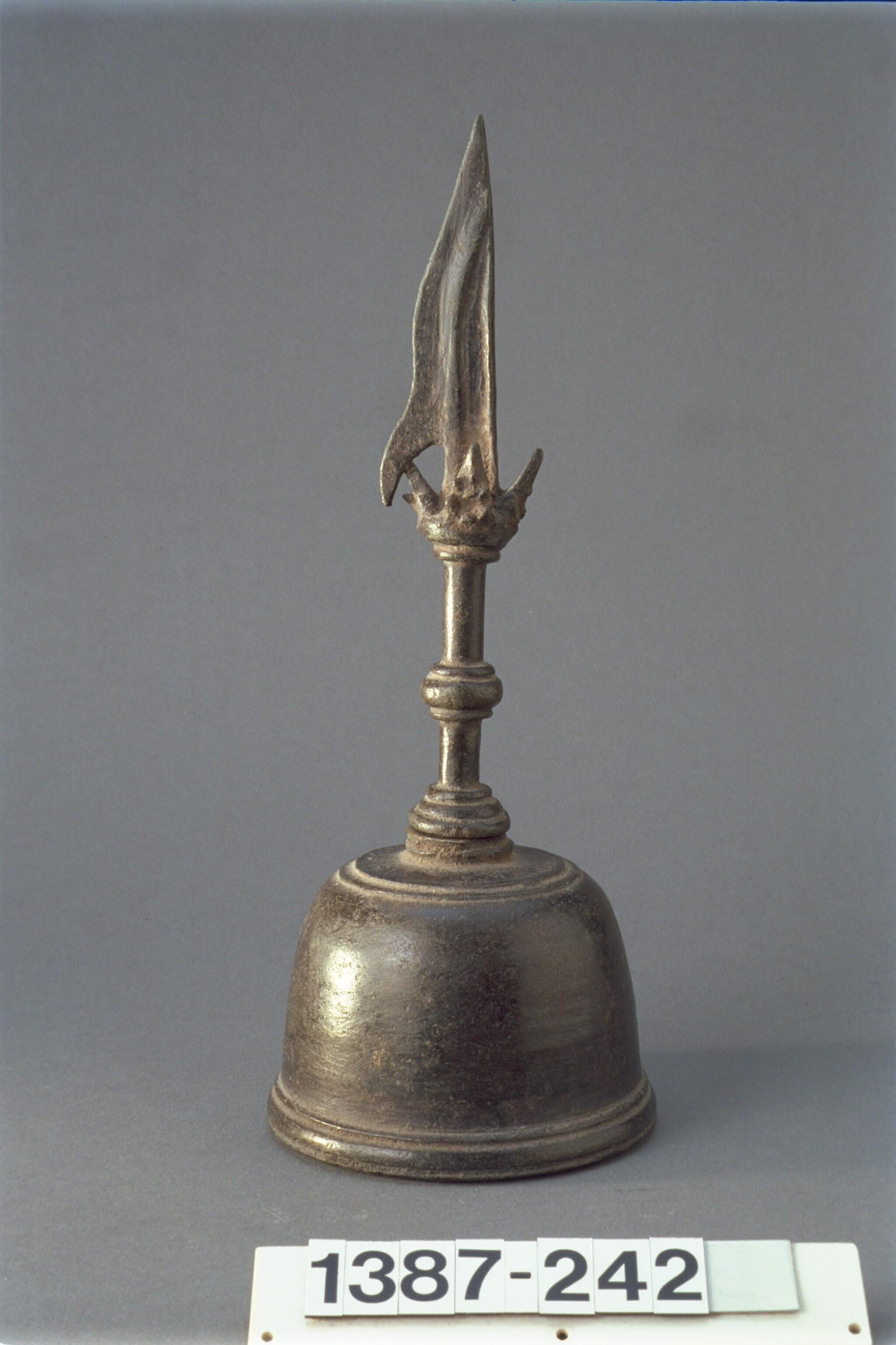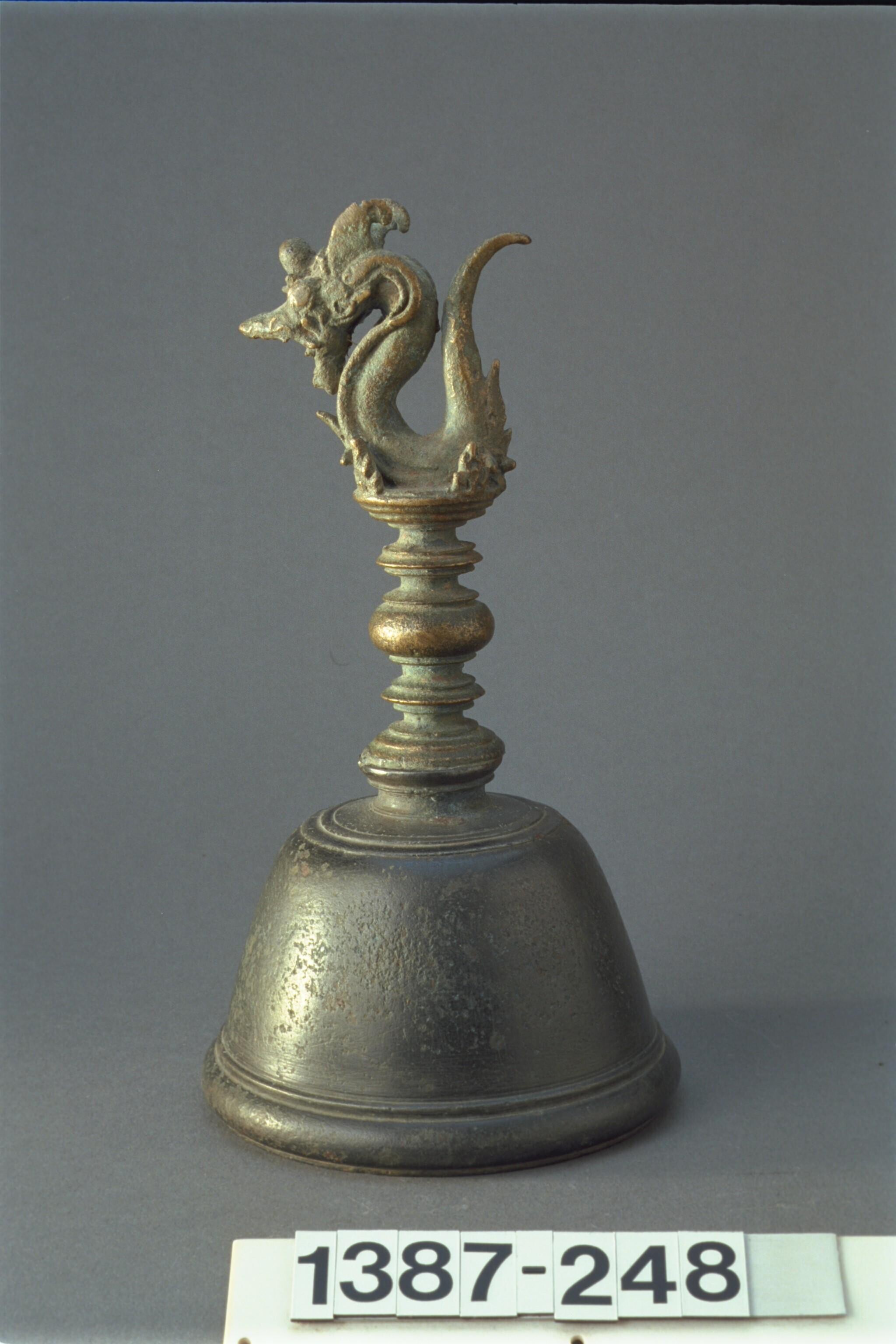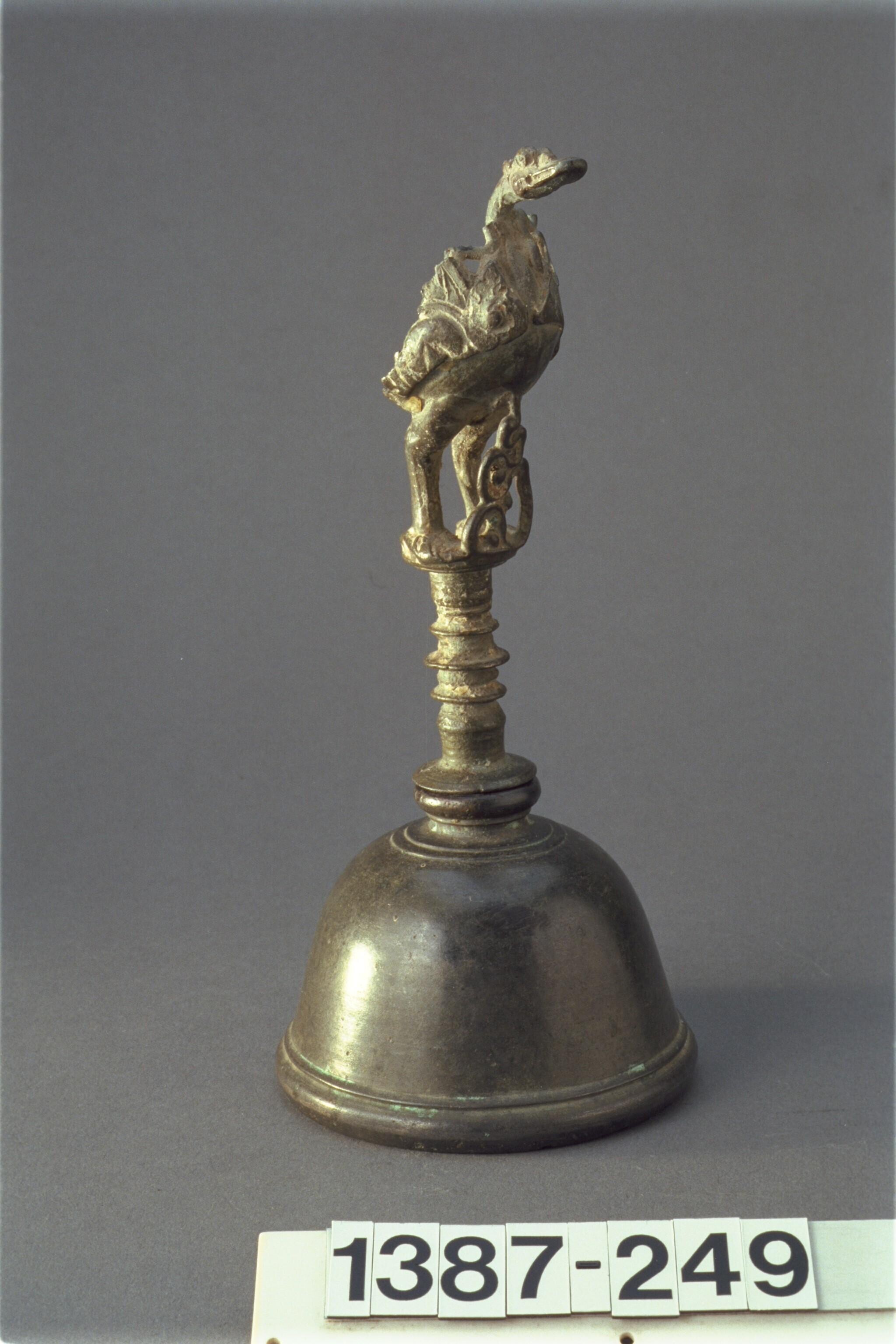 Bronzen priesterbel met een topstuk in de vorm van e...