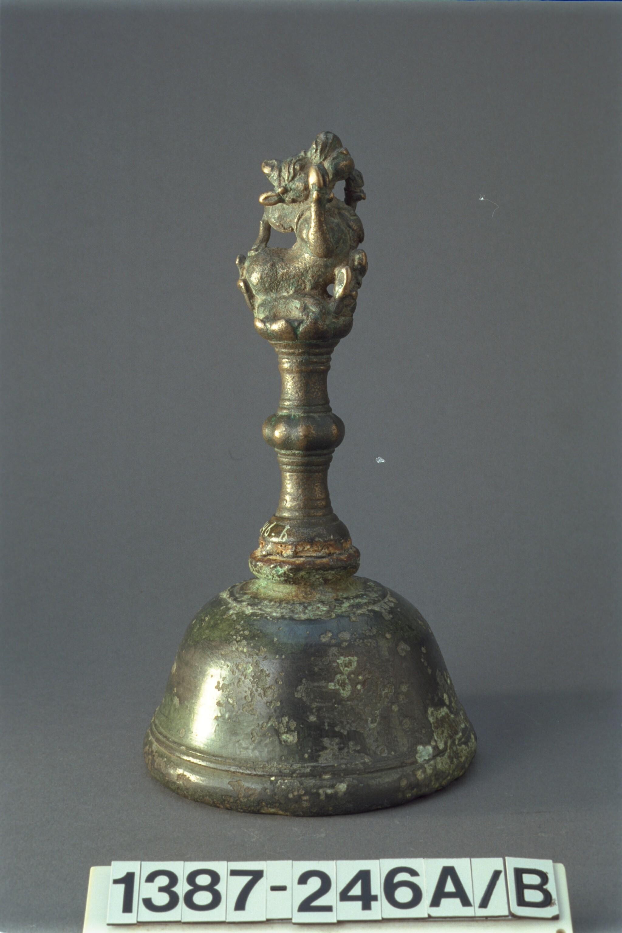 Bronzen priesterbel waarvan het topstuk afgebroken is