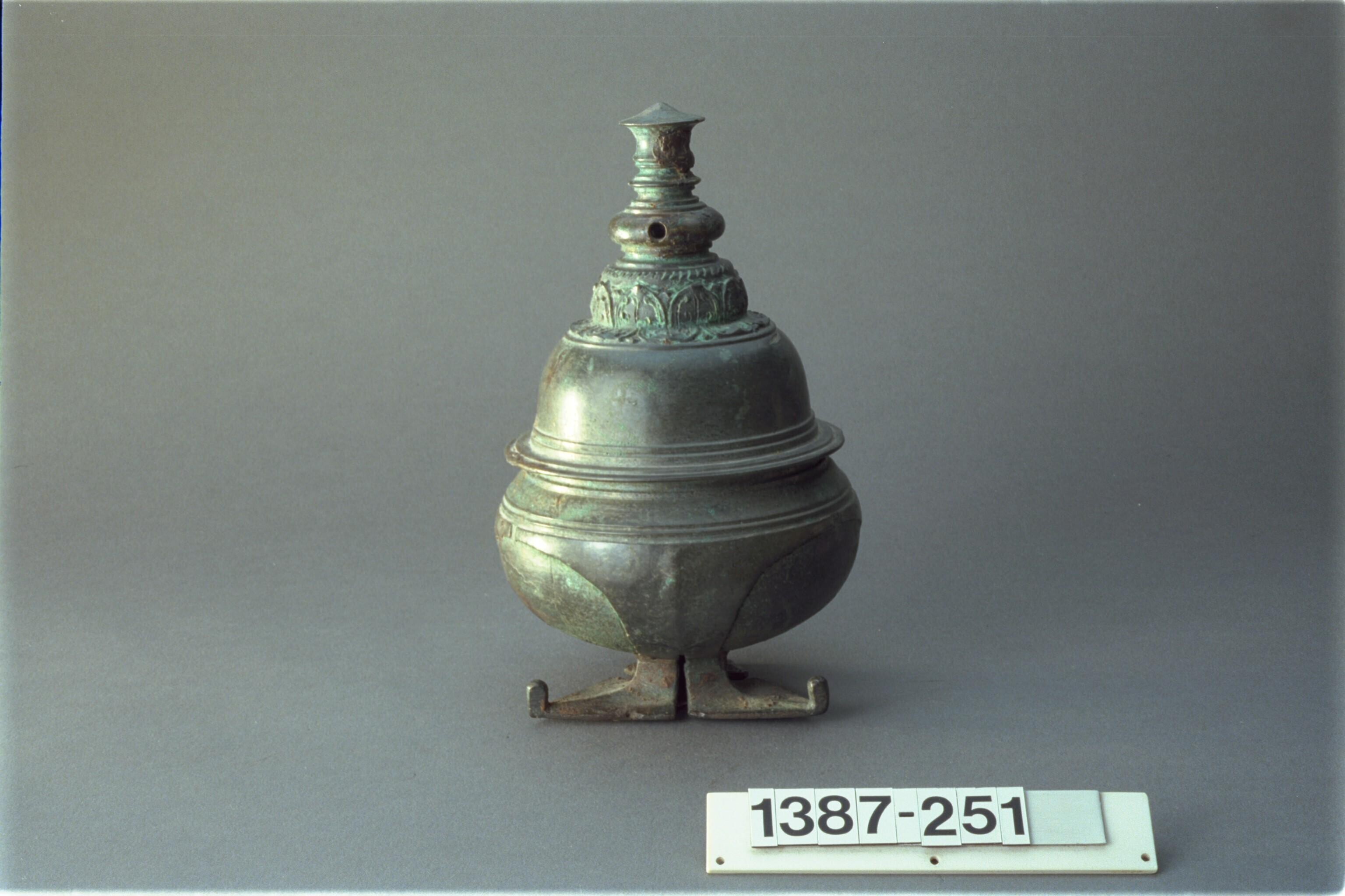 Bronzen wierookbrander waarvan het voetstuk gebroken...