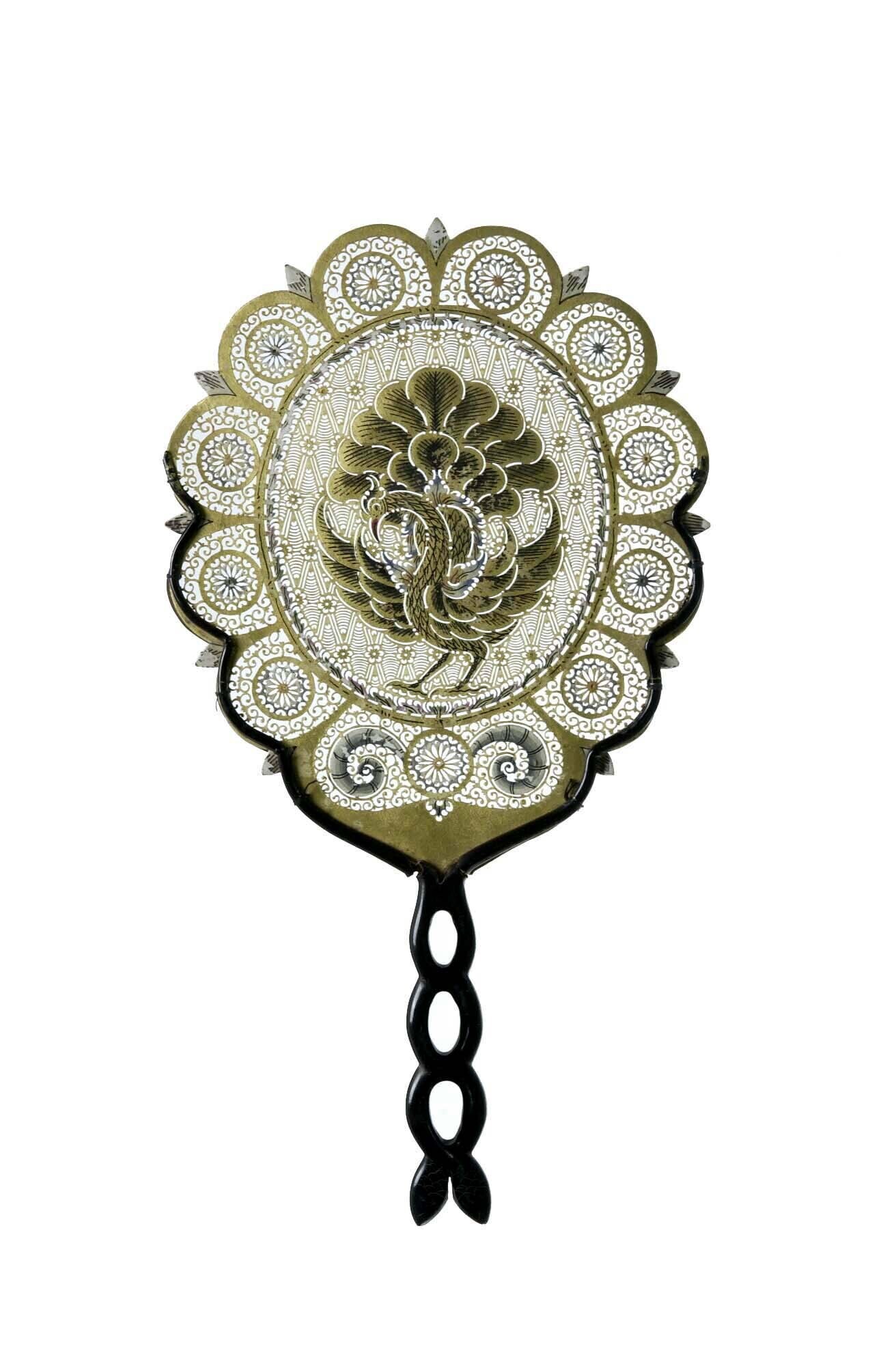 Bronzen ajour bewerkt spiegelhandvat met een afbeeld...