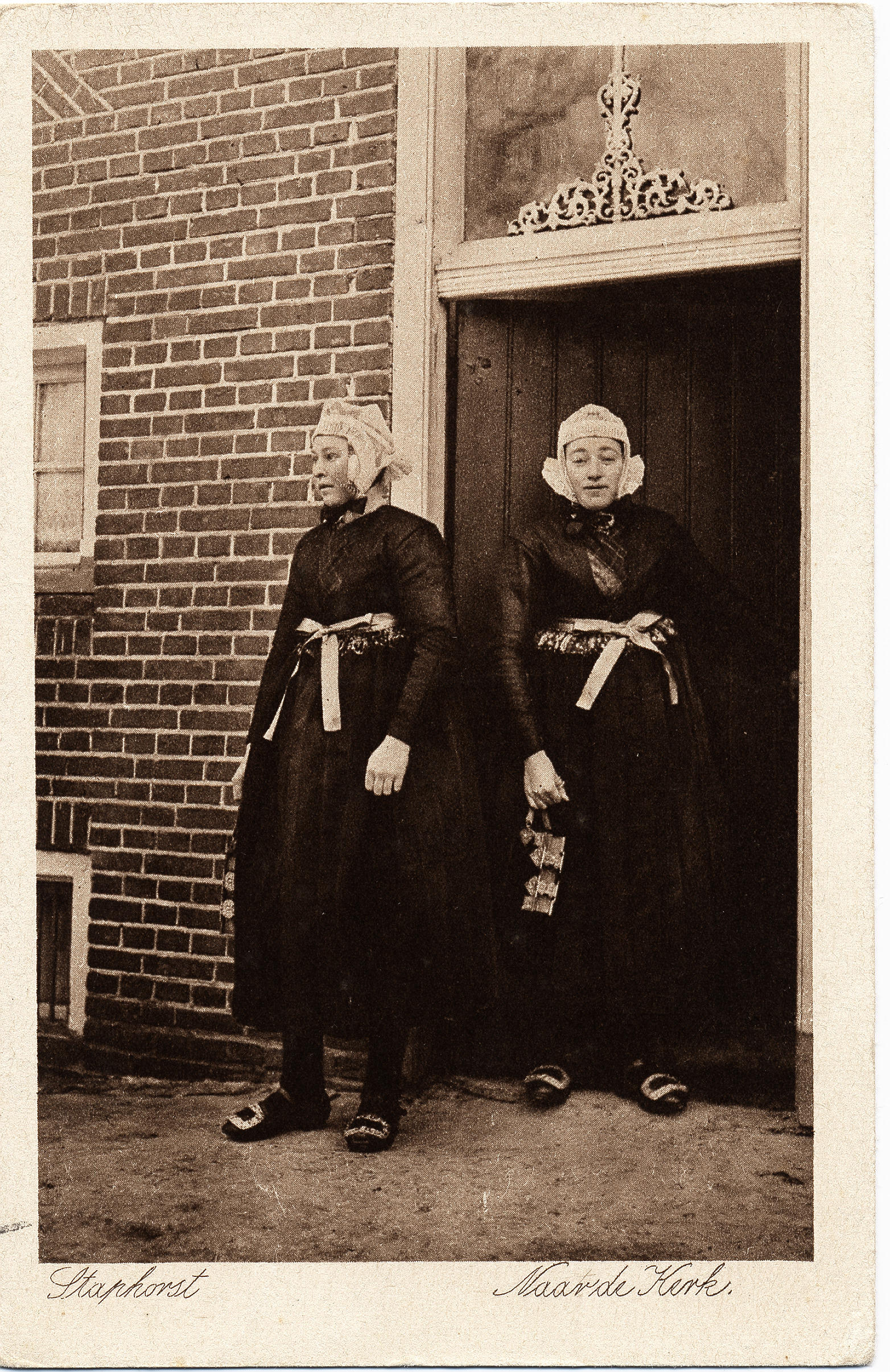 Twee vrouwen in streekdracht, Staphorst (ansichtkaart)
