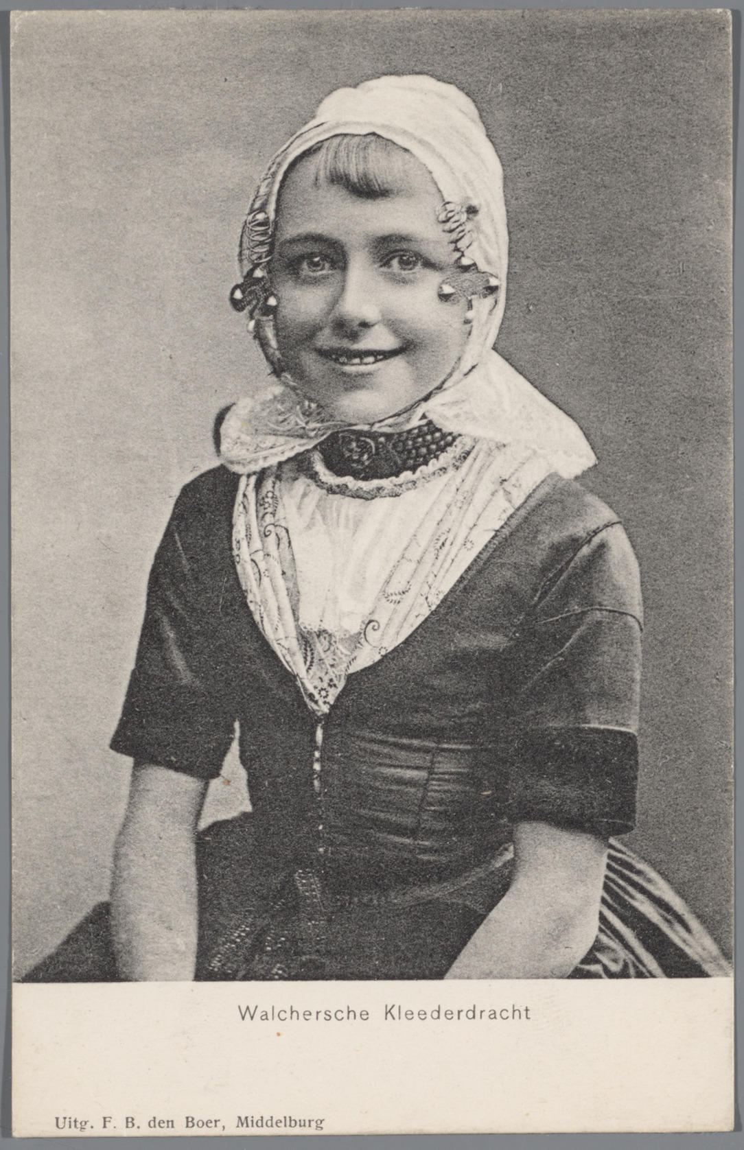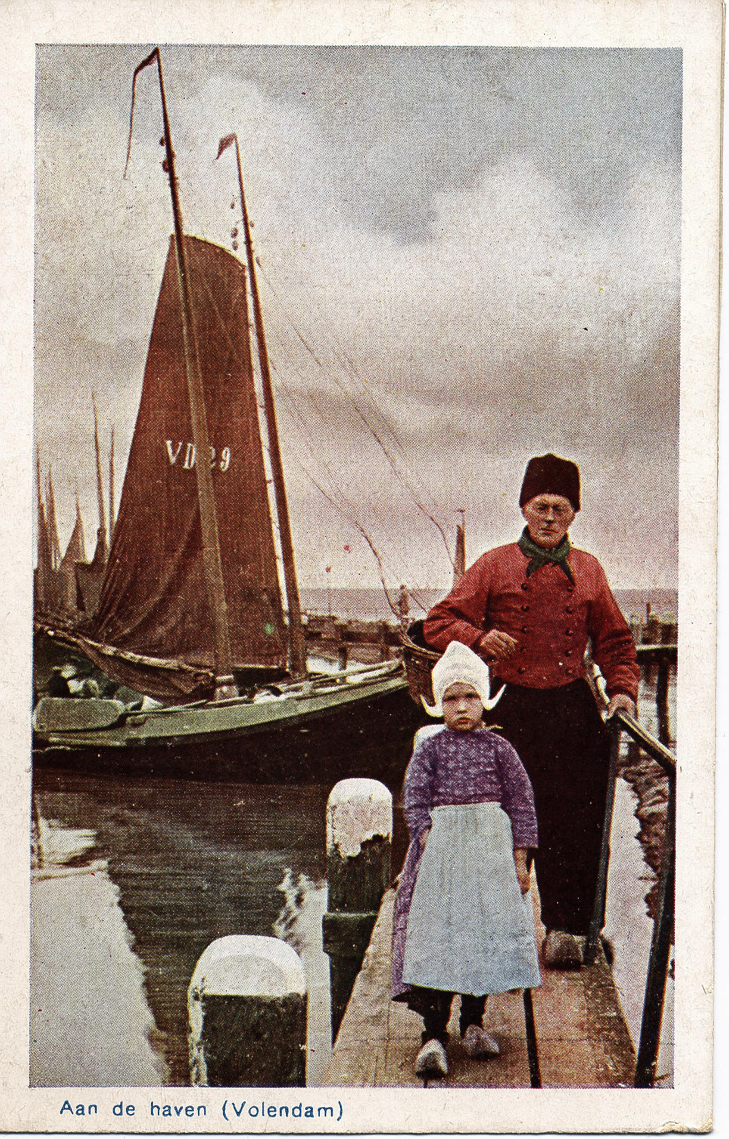 Meisje en man in Volendammer dracht (ansichtkaart)