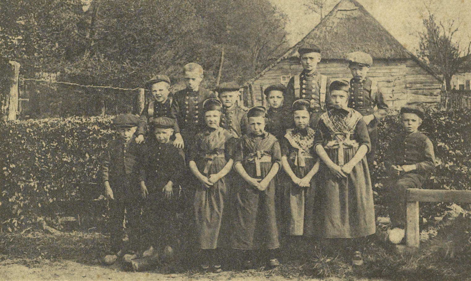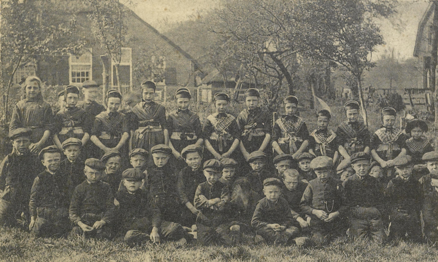 Groep schoolkinderen, Staphorst (ansichtkaart)