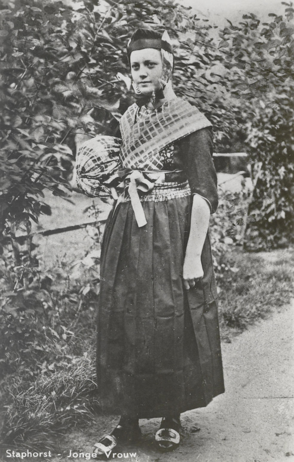 Vrouw in kerkdracht, Staphorst (ansichtkaart)
