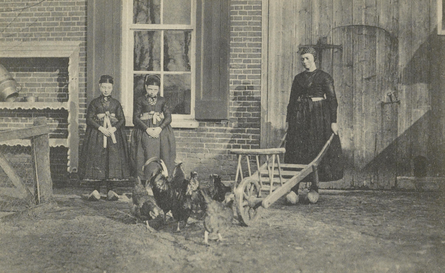 Vrouw en meisjes in streekdracht, Staphorst (ansicht...