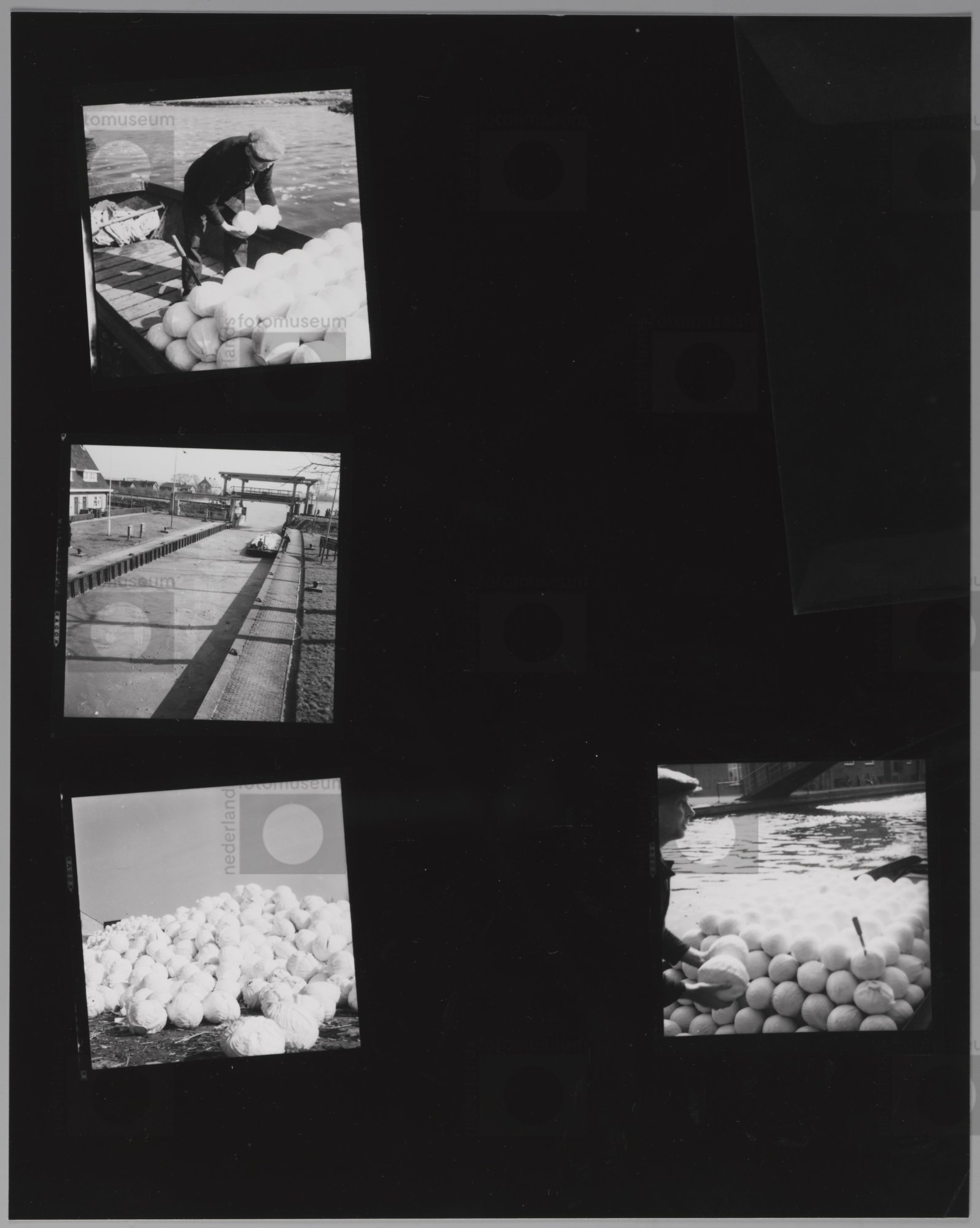 Aanvoer witte kool per schuit naar de veiling Langen...
