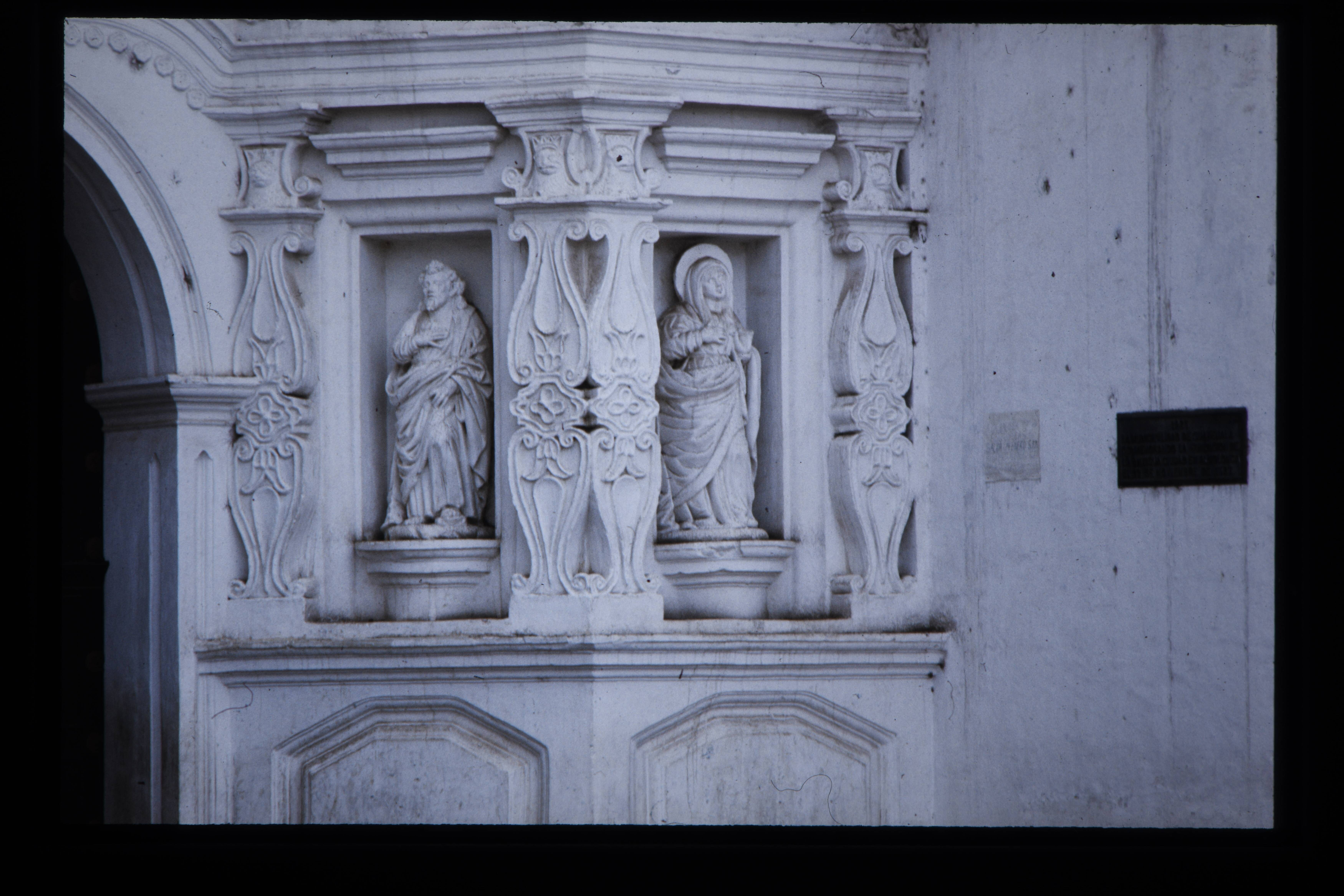 'Heiligenbeeld in een nis, links en rechts van de to...