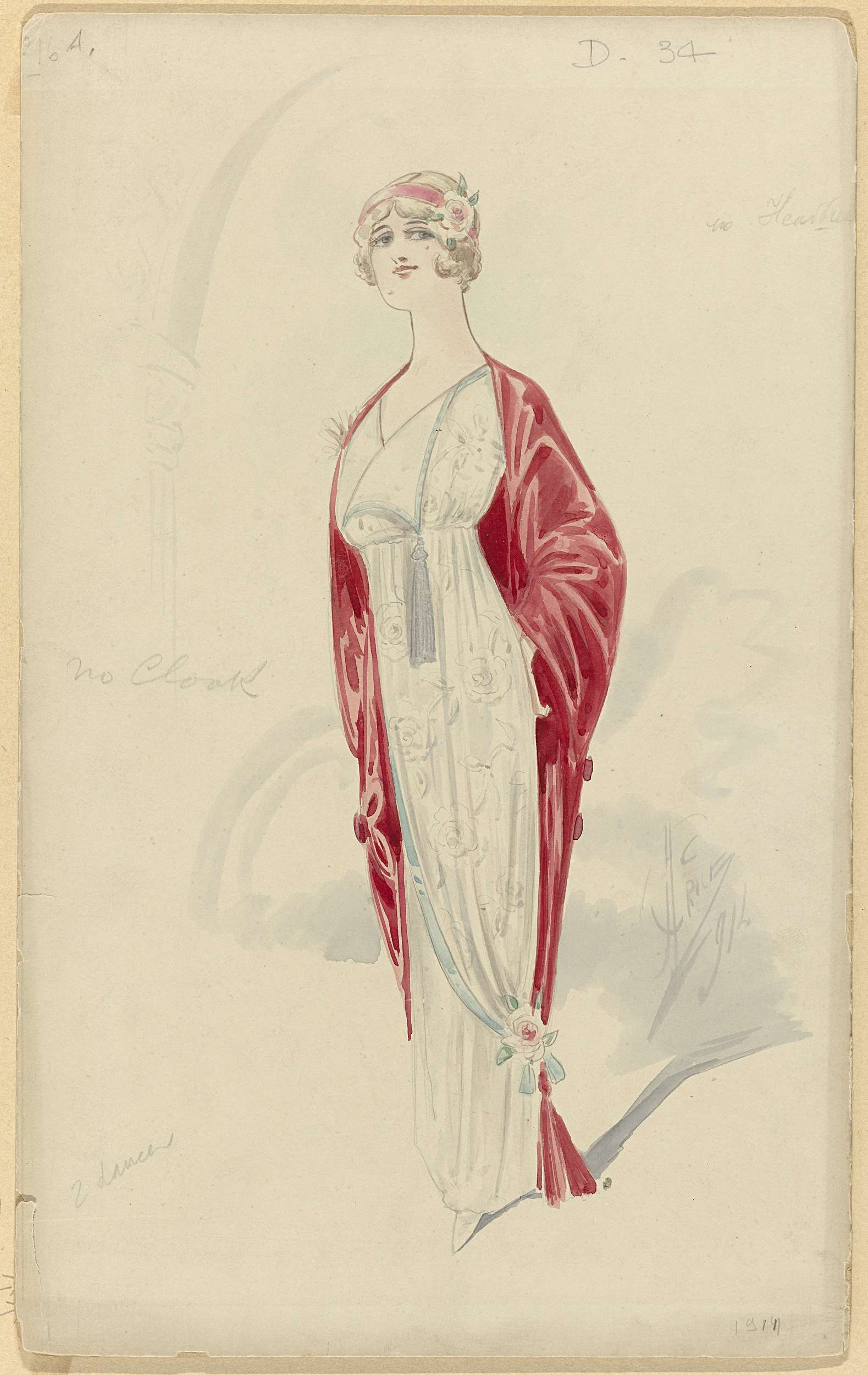 Vrouw in witte avondjurk met bloempatroon, 1914, No....