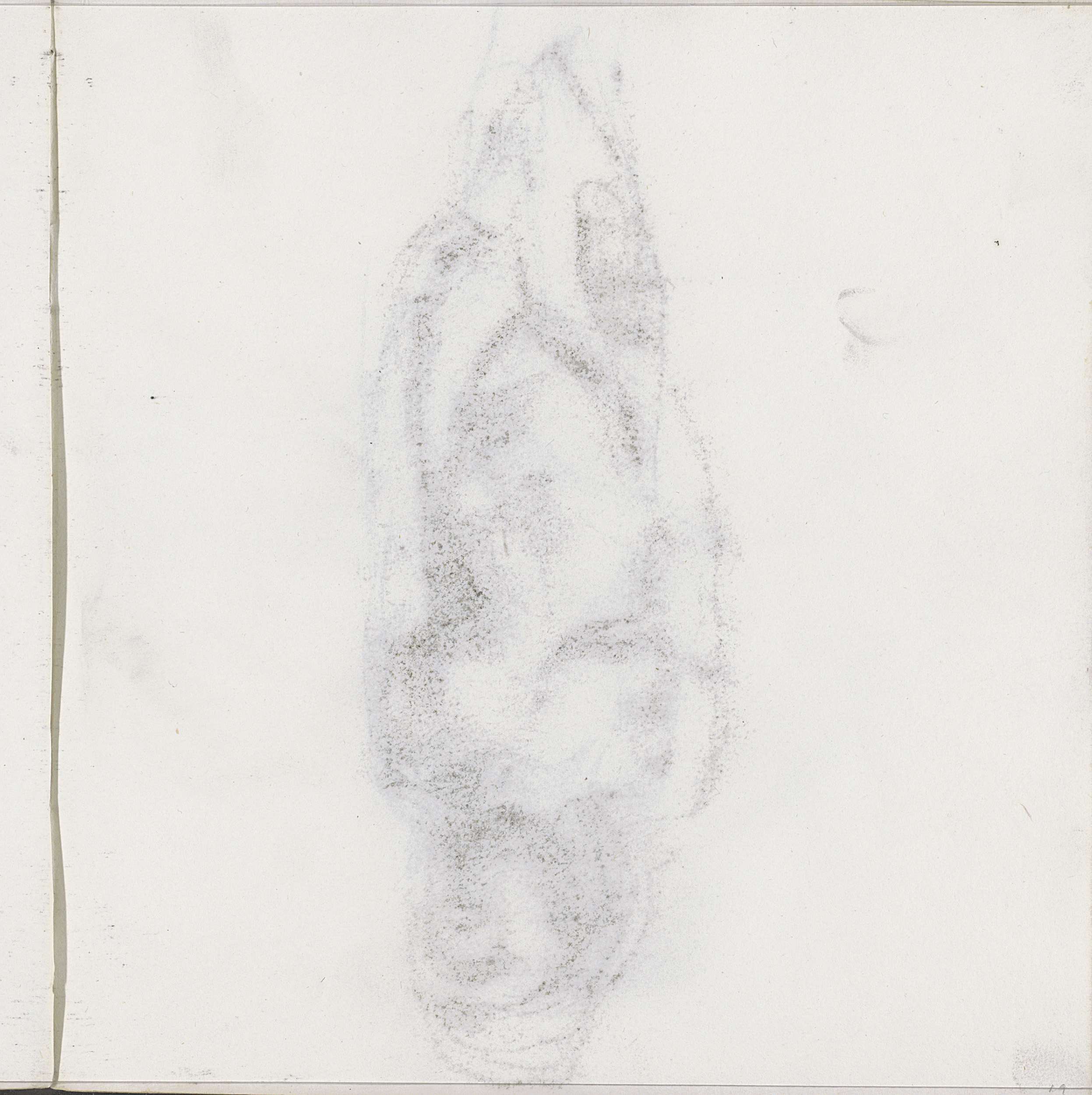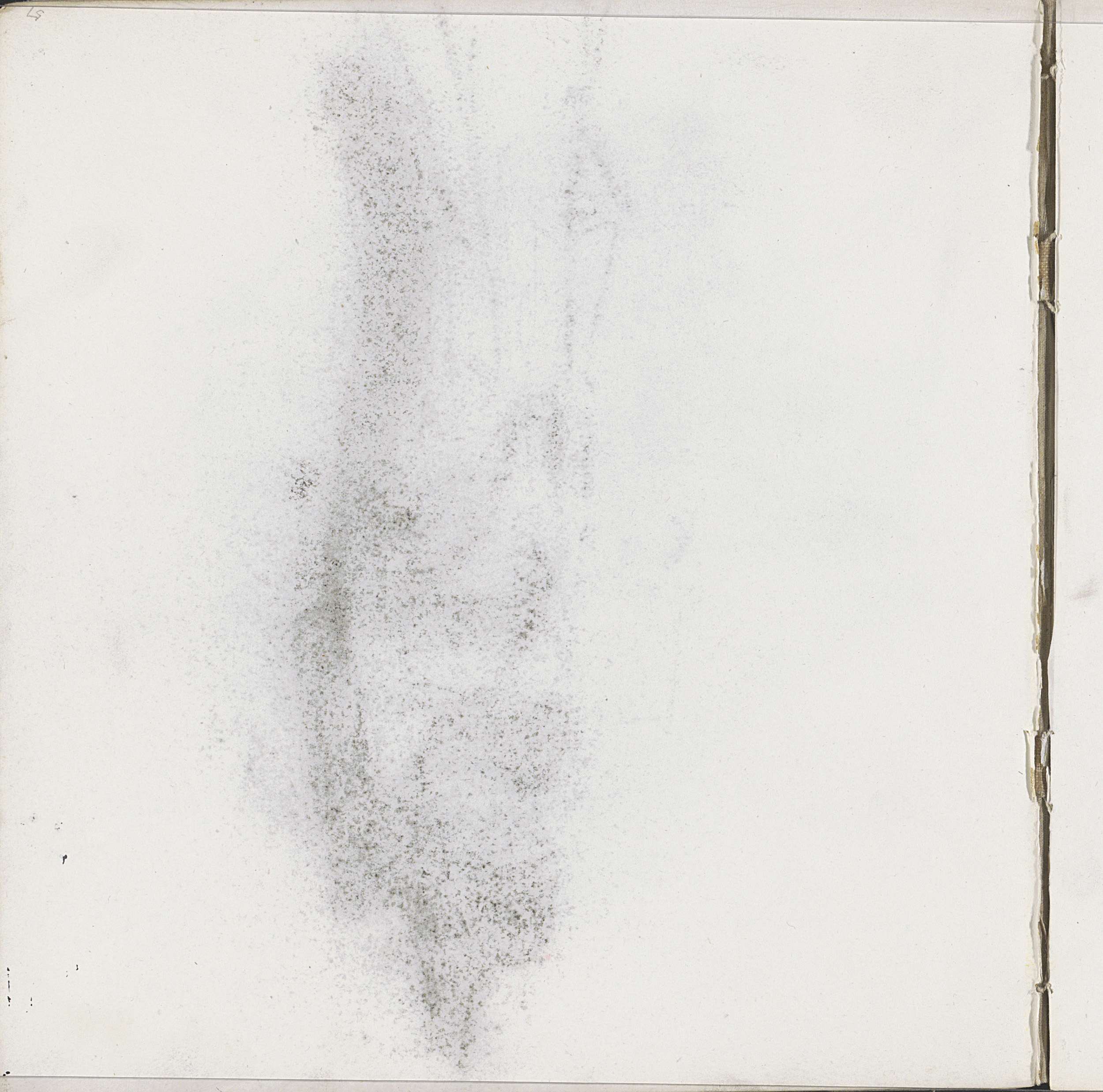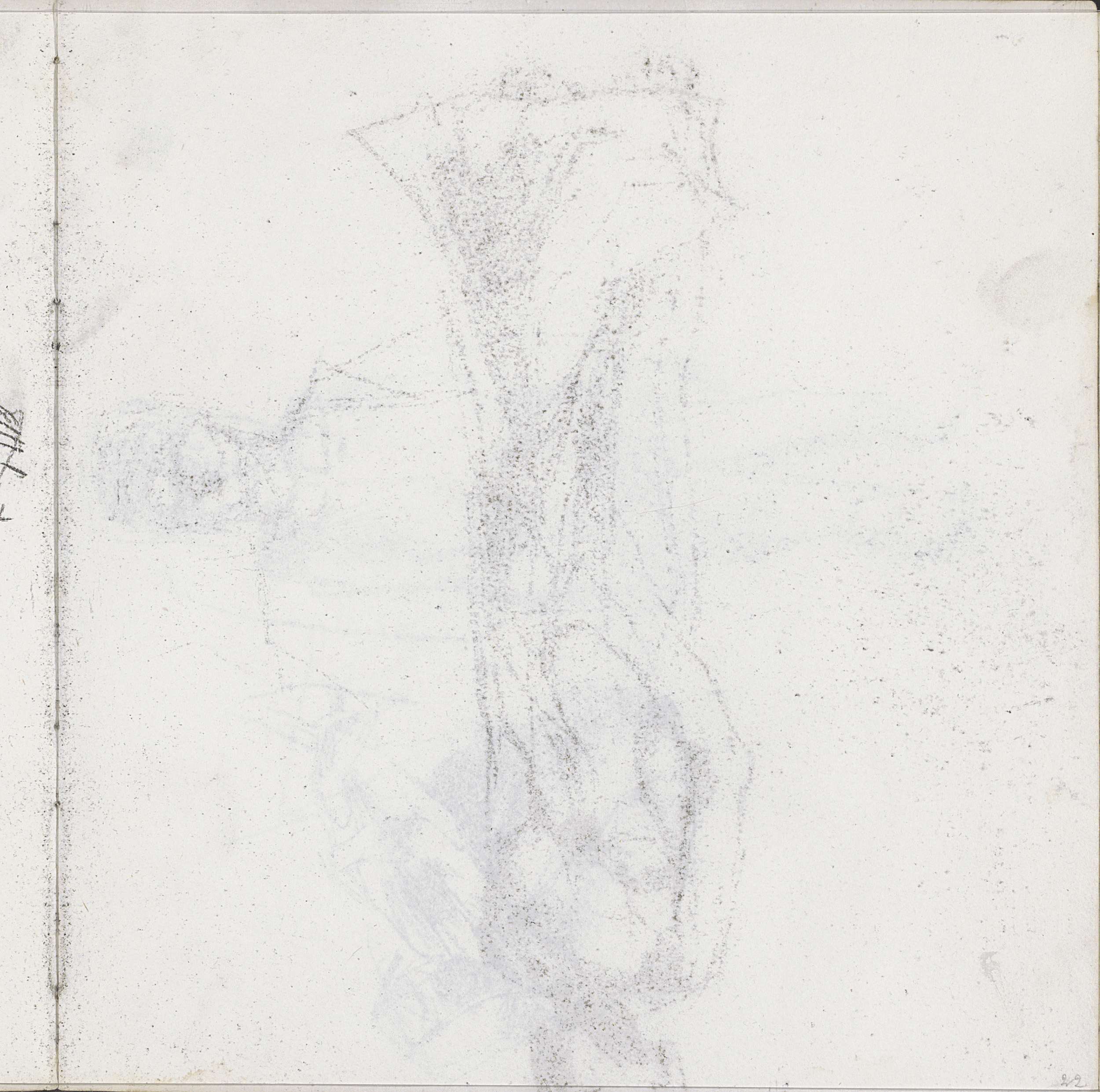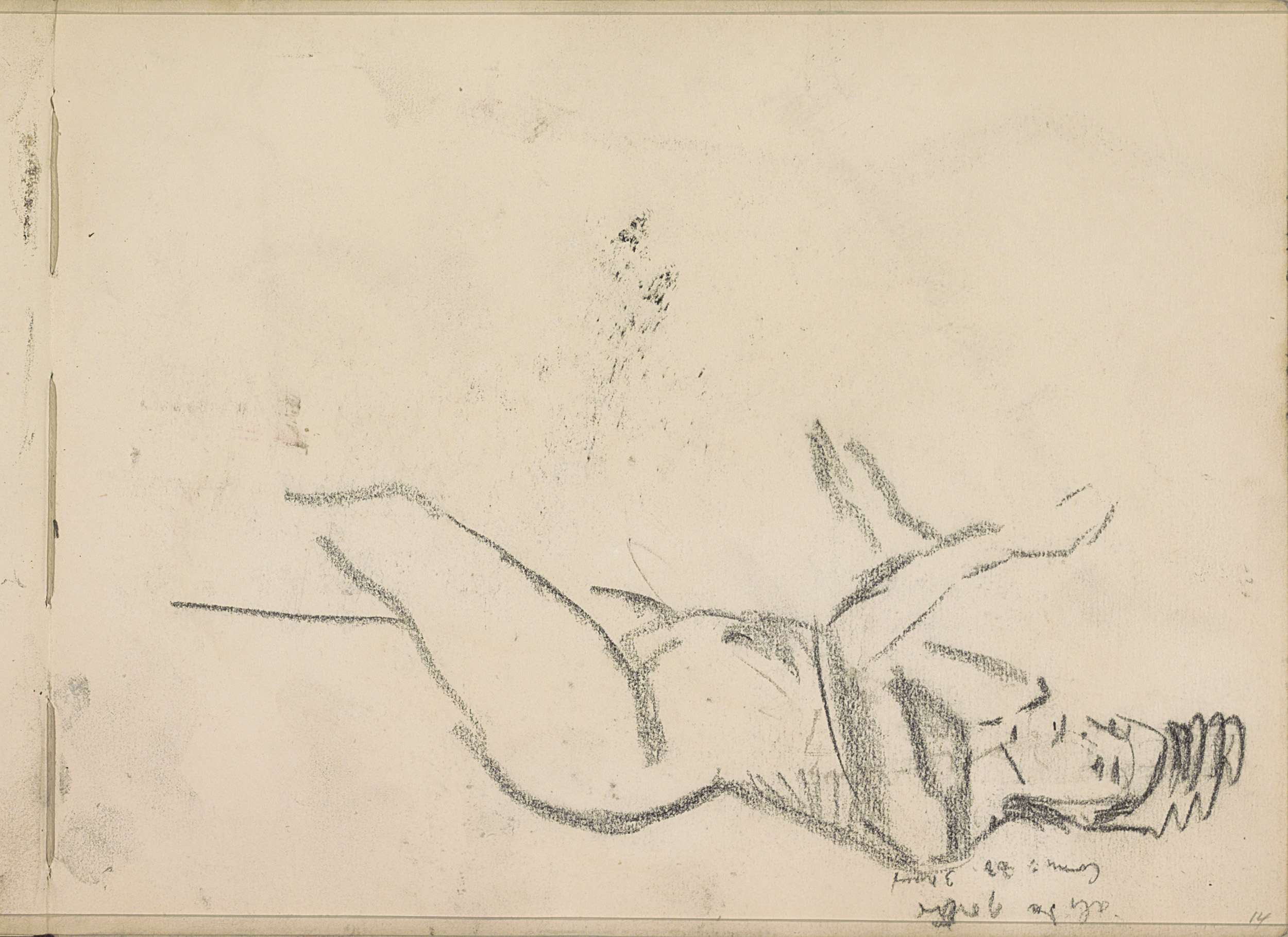 Staand vrouwelijk naakt, leunend op een fauteuil