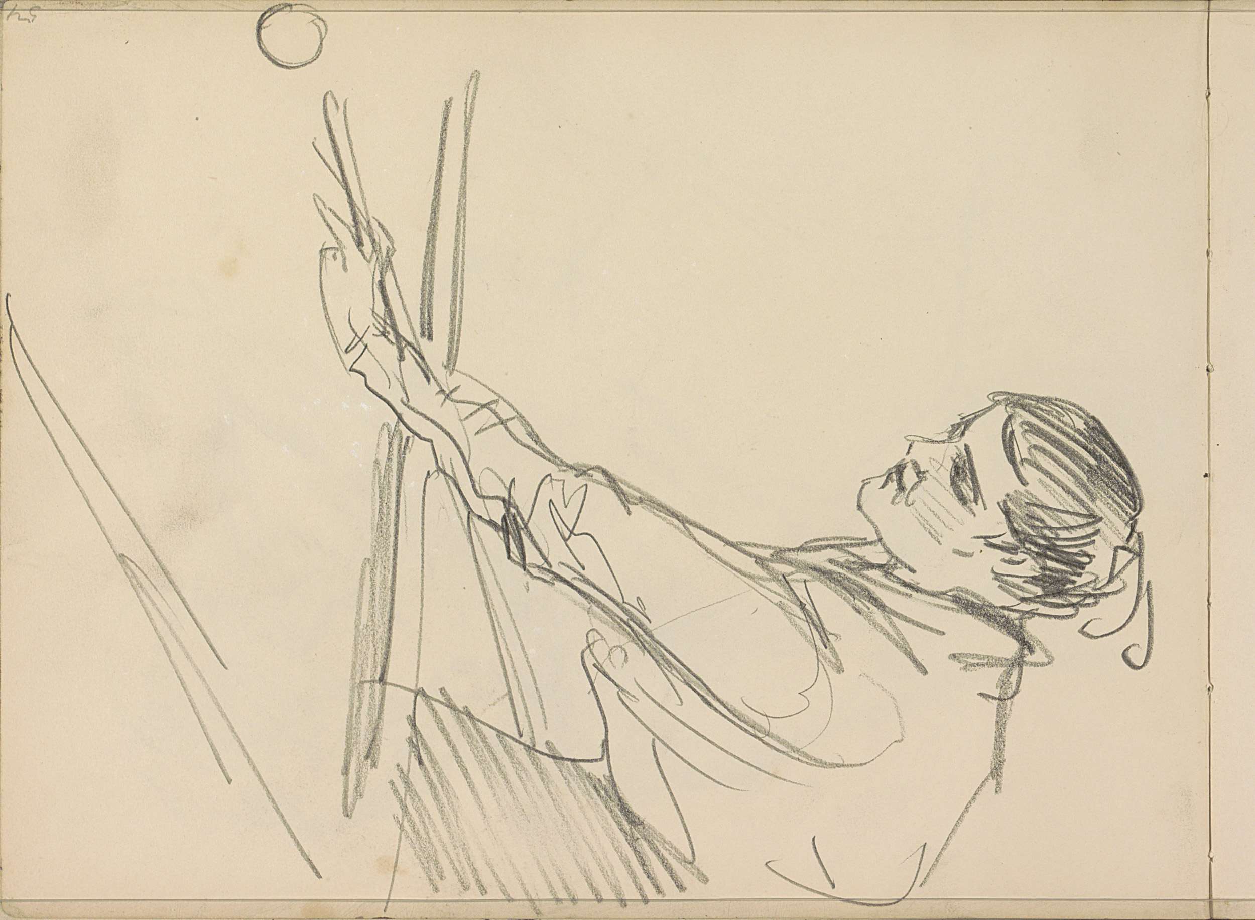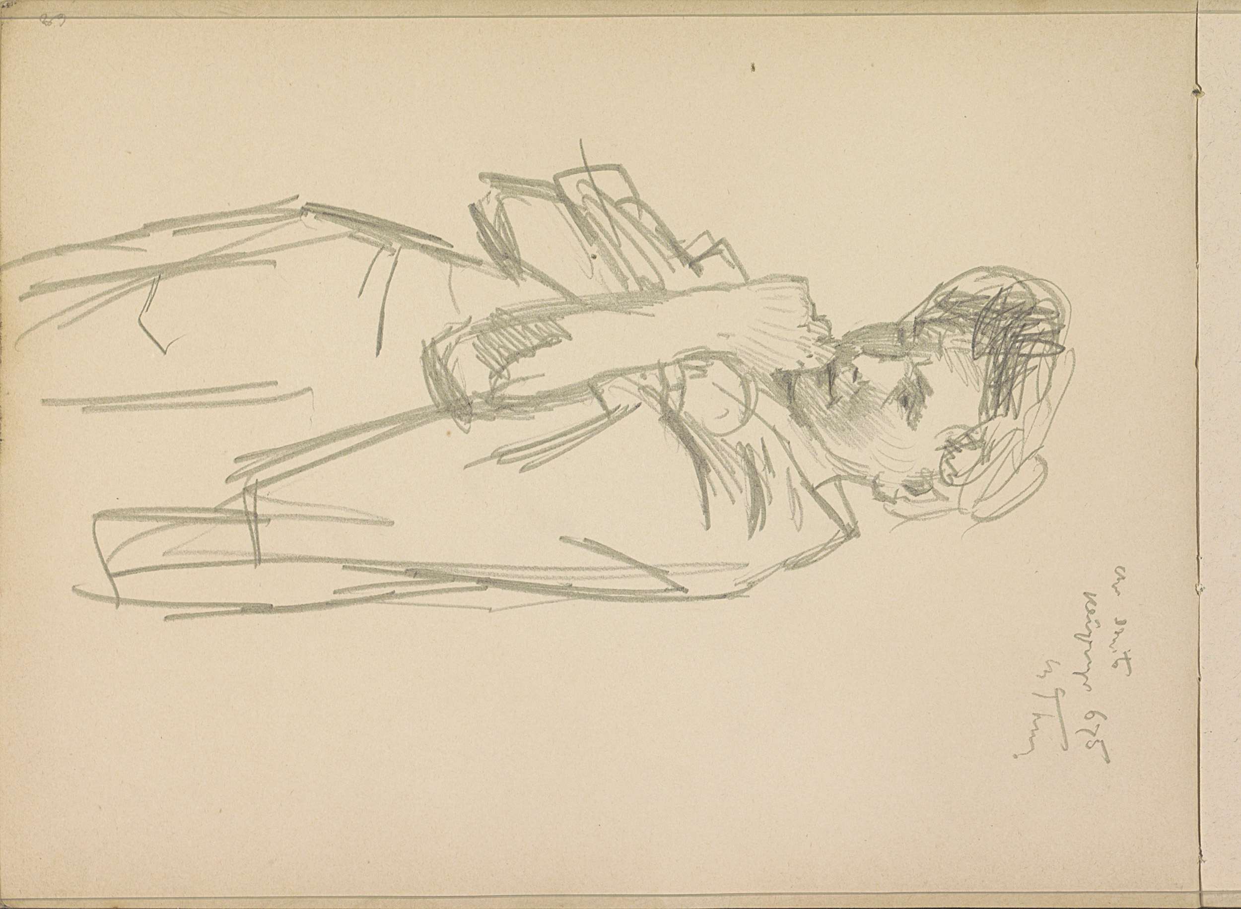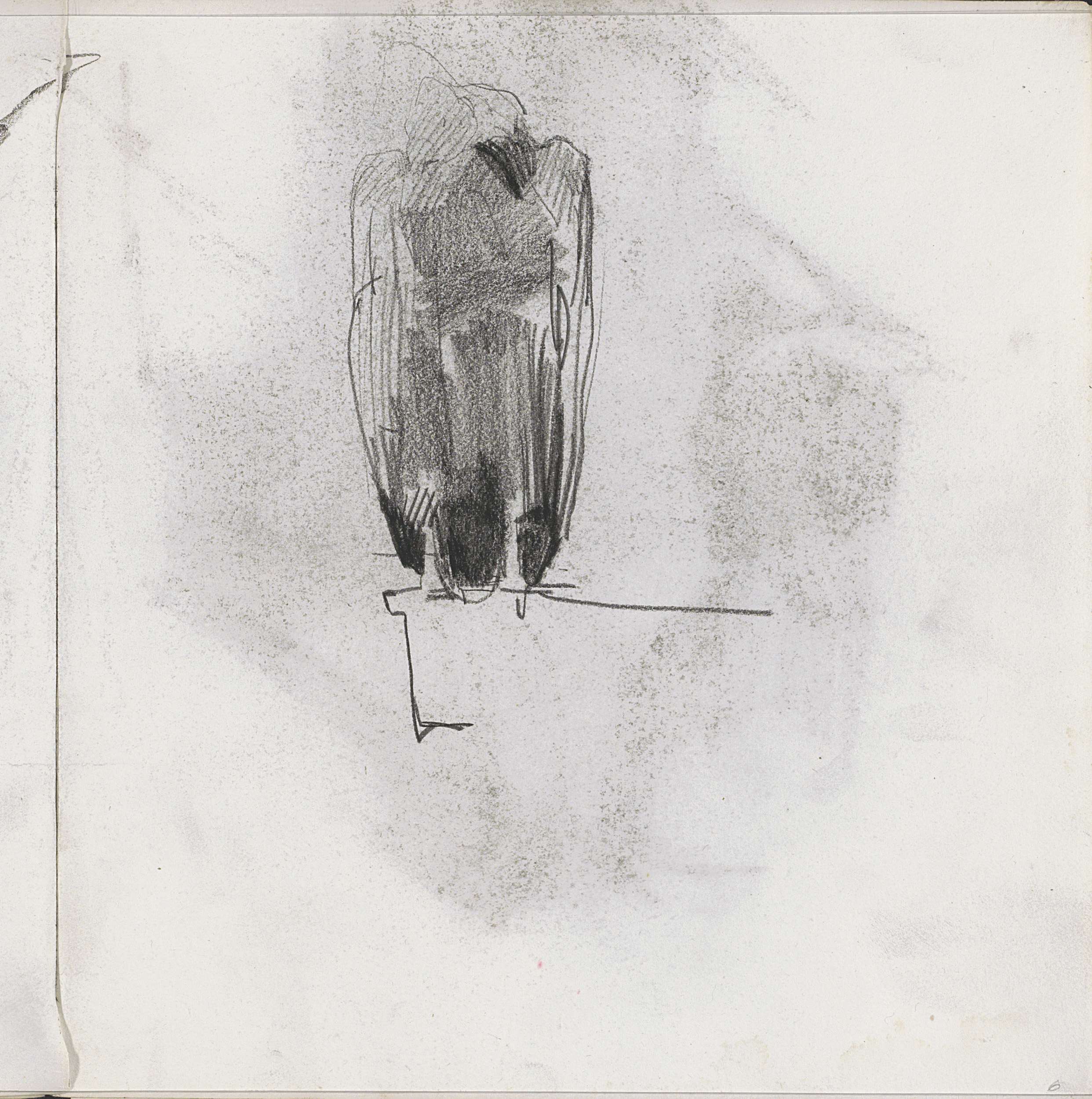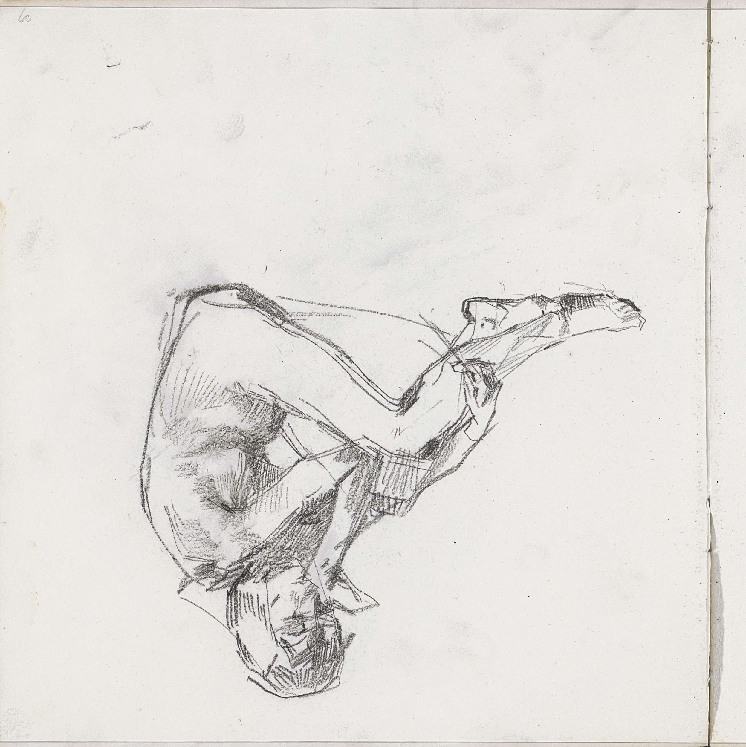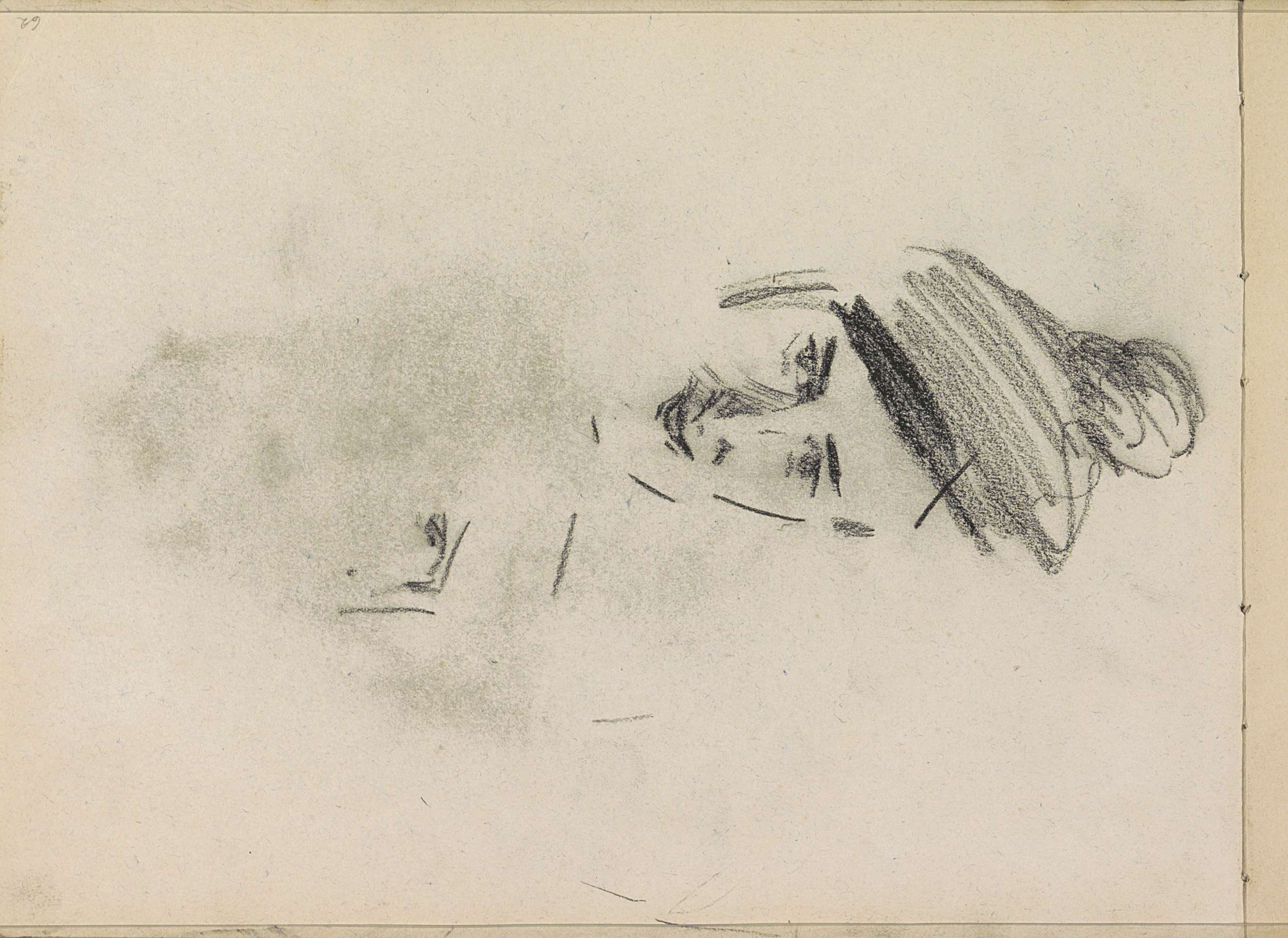 Staand vrouwelijk naakt, leunend op een fauteuil