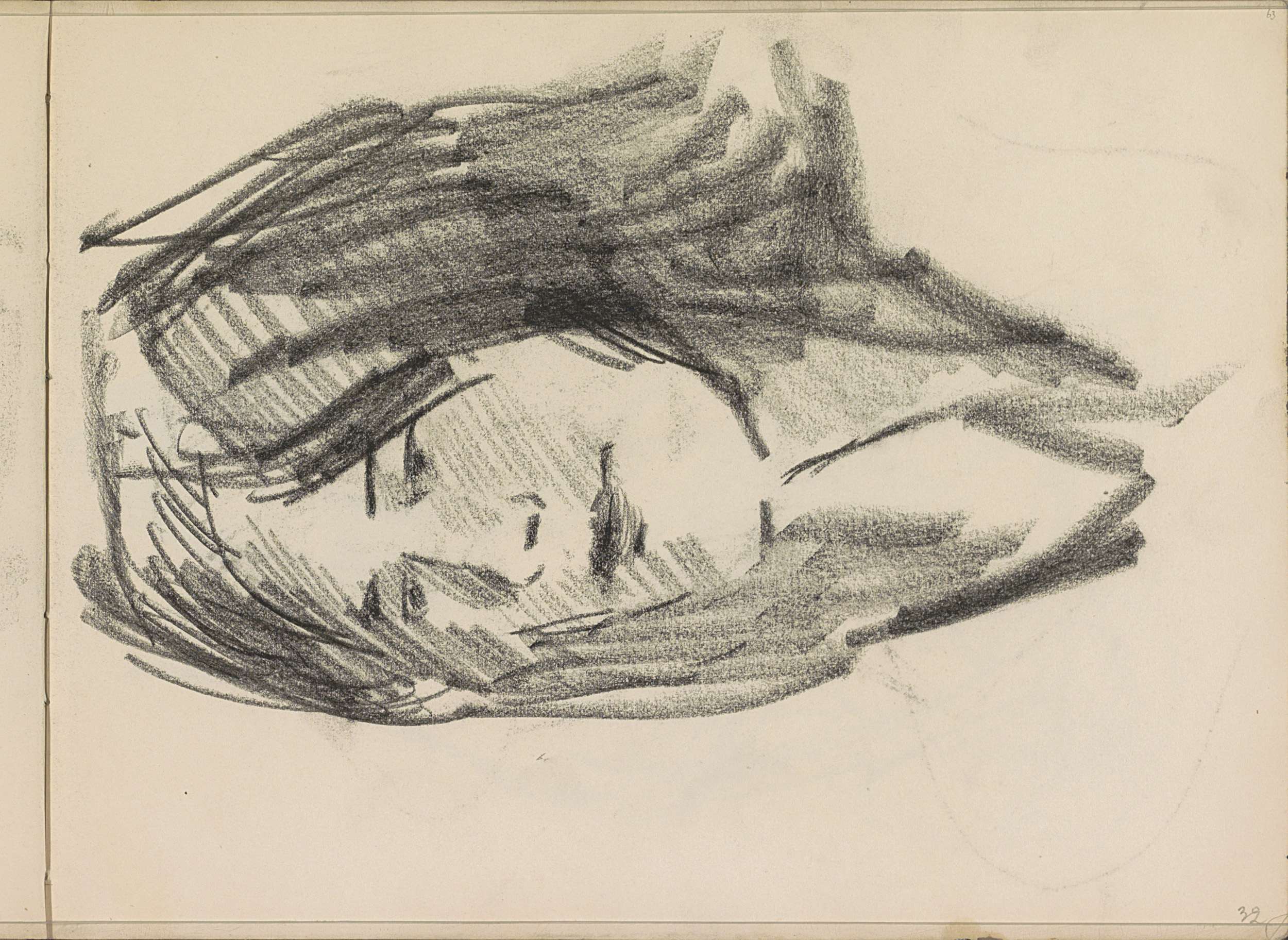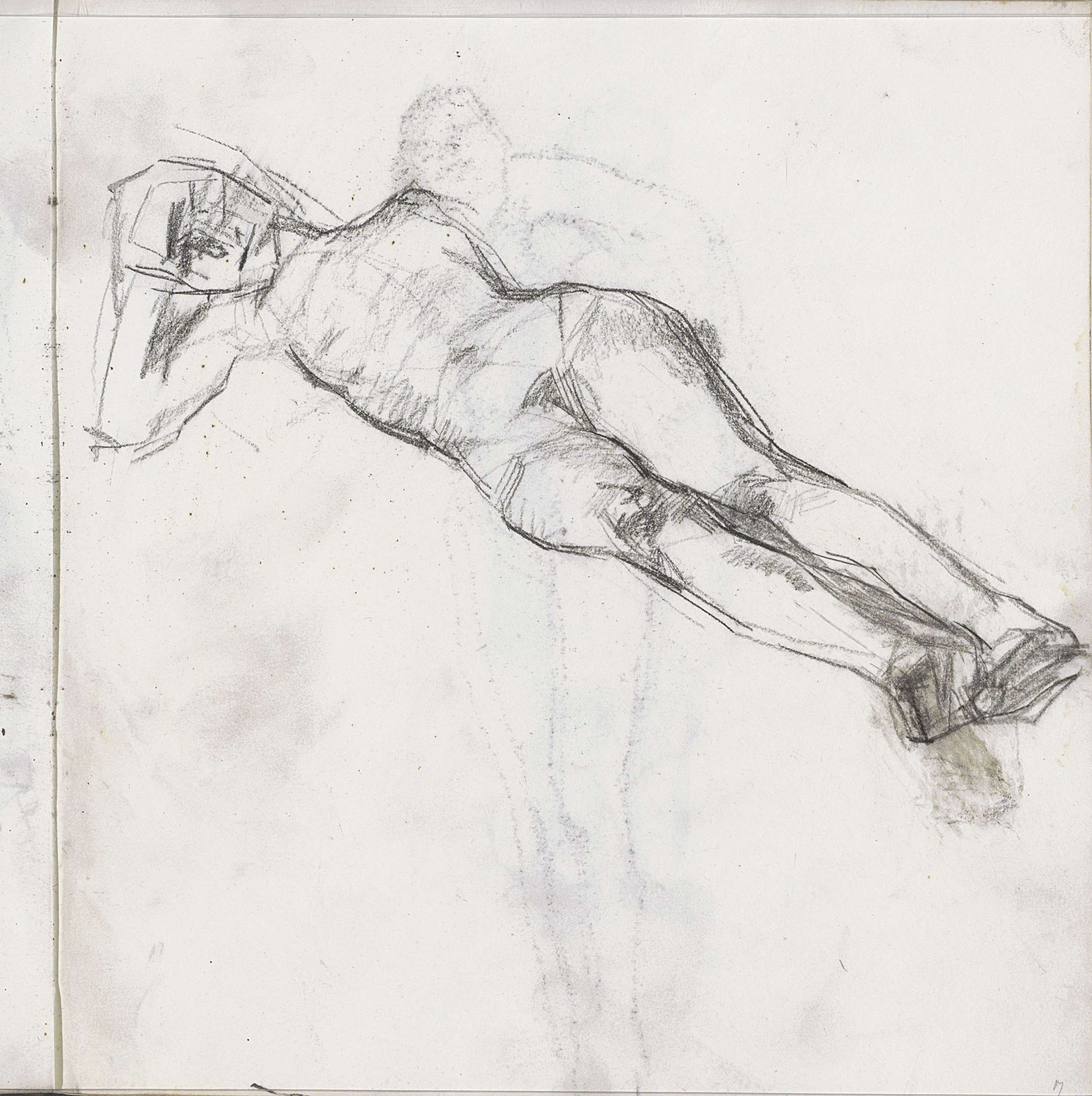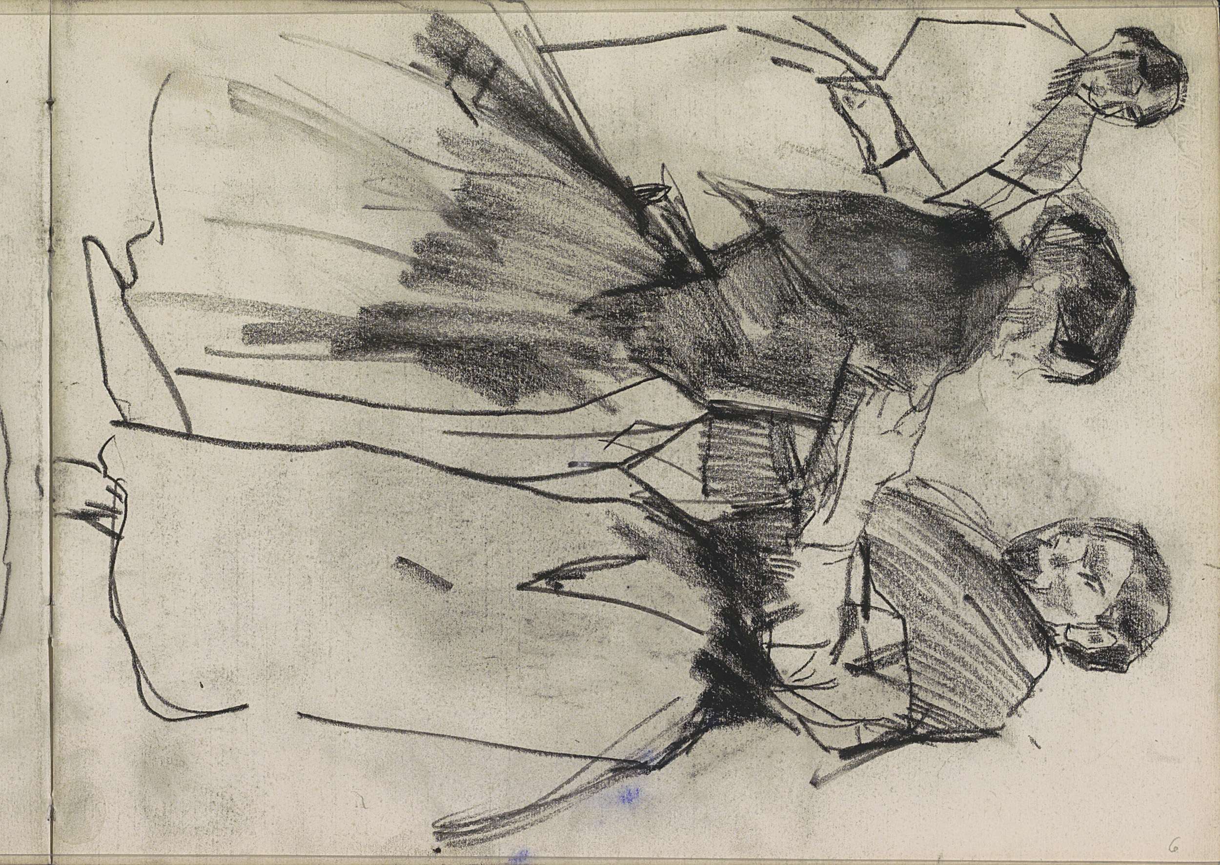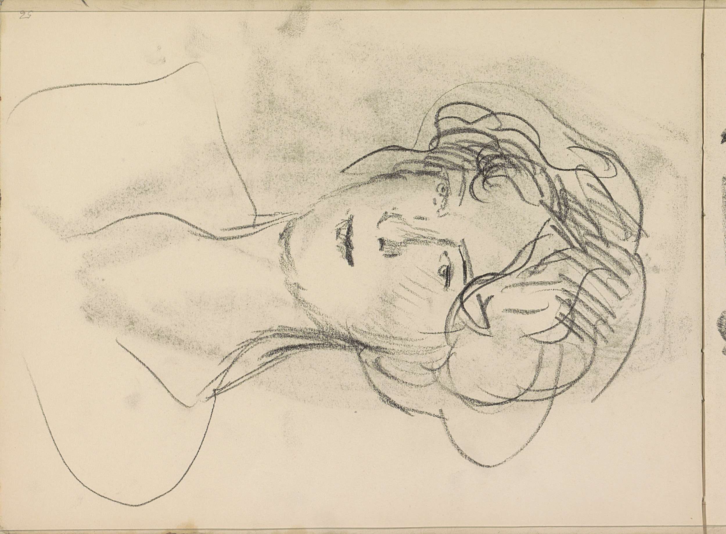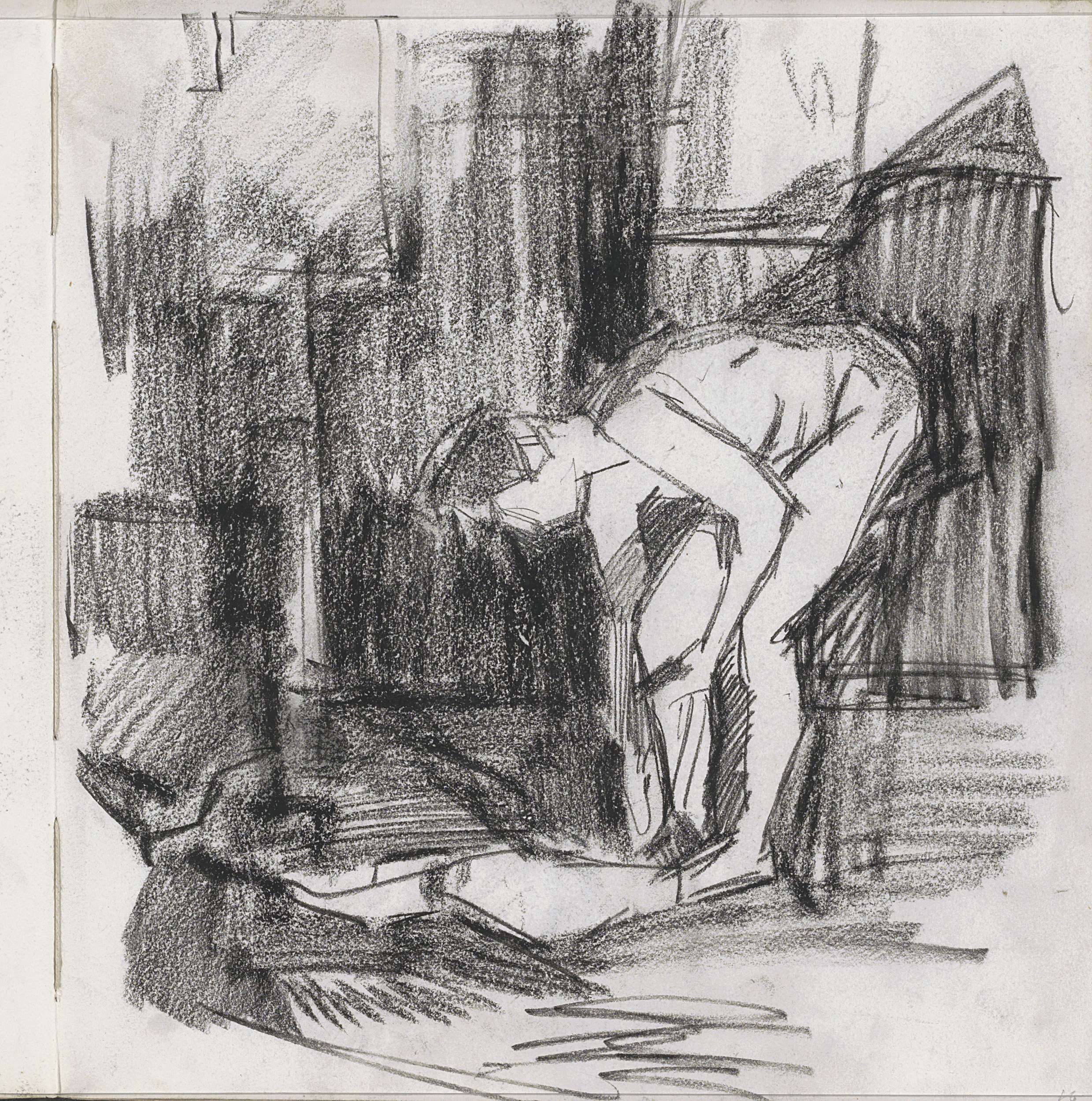 Staand vrouwelijk naakt, leunend op een fauteuil