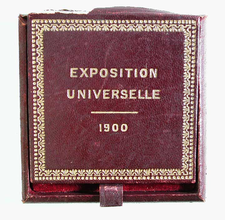 Rood vierkanten doosje bij penning Exposition Univer...